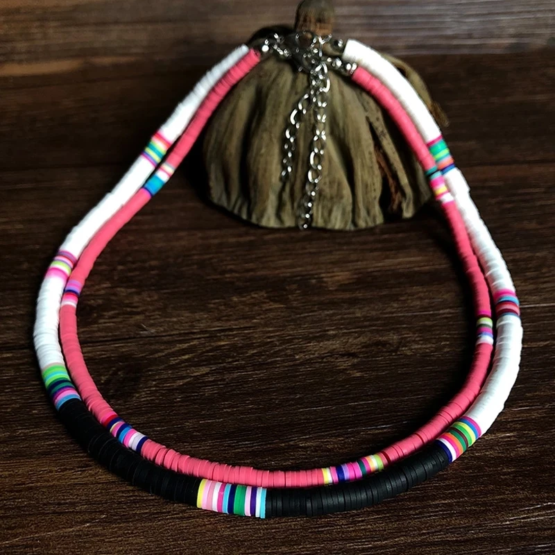 Ожерелье из полимерной глины ручной работы, ожерелье-чокер из мягкой керамики, цветные серферские бусины, ошейник, Женские Ювелирные изделия, подарки