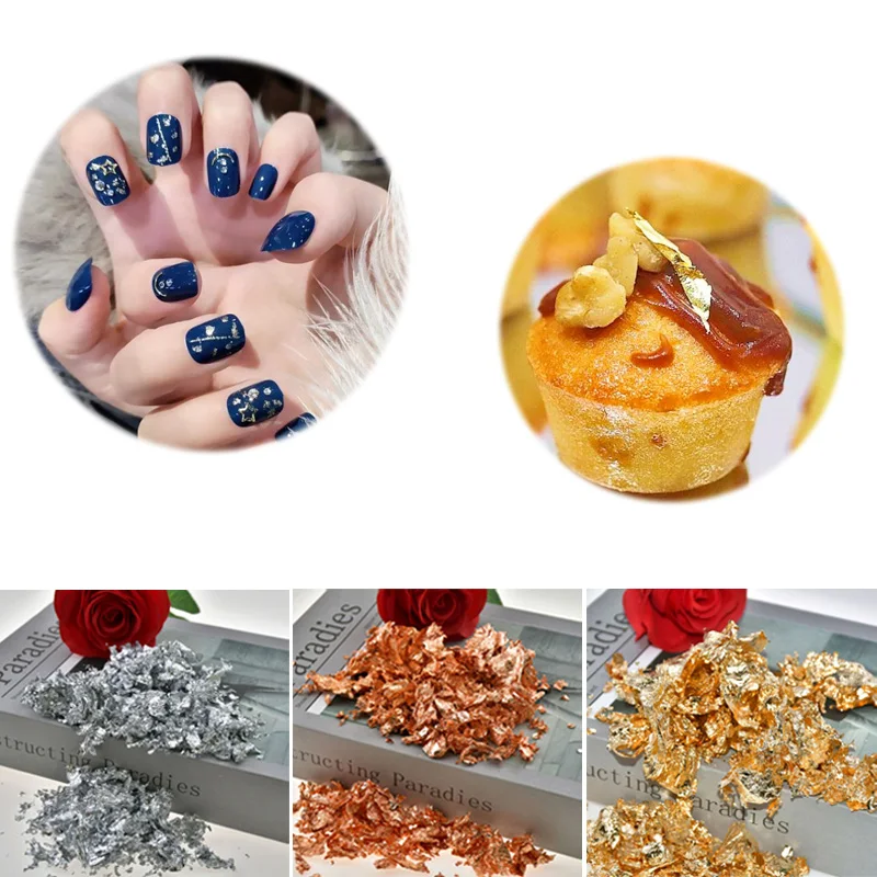 3 г Золотая фольга для свечей, имитация золотой, серебряной, медной фольги, блестки, блестки, листы в виде листьев, хлопьев, фольга россыпью для украшения ногтей своими руками
