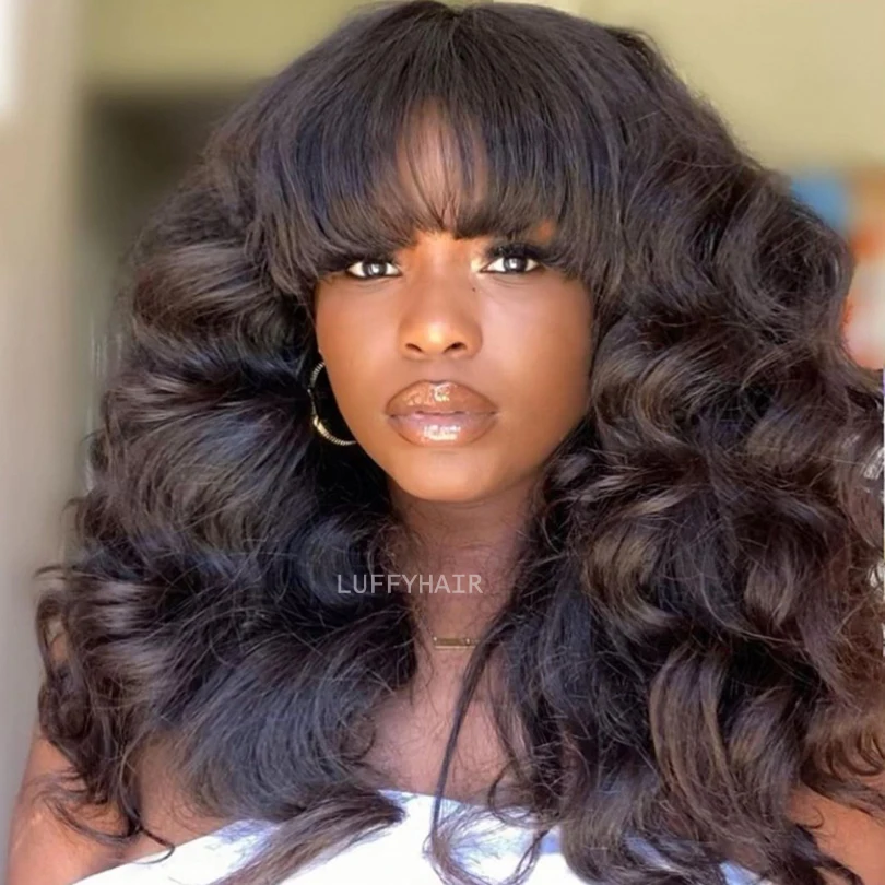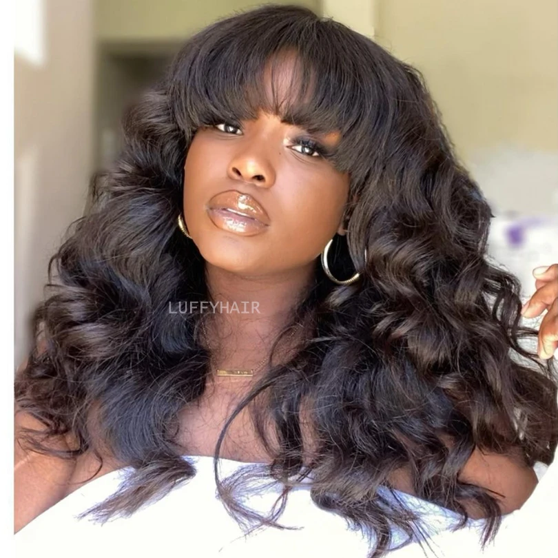 Волнистые человеческие волосы Luffywig с челкой для женщин, бразиль...