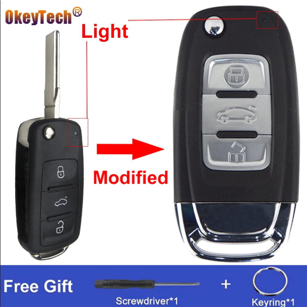 Обновленный модифицированный откидной Чехол OkeyTech с 3 кнопками и дистанционным управлением, складной чехол для ключа VW For Volkswagen Beetle Polo Tiguan Fob, чехол