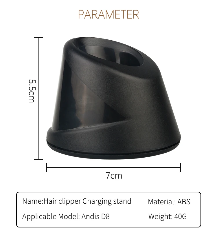 Электрическая машинка для стрижки волос зарядная станция стрижка Инструменты Клипер зарядка подставка База быстрое зарядное устройство подходит для Andis D8 парикмахерские инструменты [Спецификация] Название товара: Подставка для зарядки Материал: АБС-пластик Цвет: черный Размер: прибл. 7*5,7 см Посылка включает в себя: 1 × зарядную подставку [Особенности] 1. Подходит для электрических щипцов Andis D8, безопасная и стабильная зарядка. 2. Основа не скользит, устойчива и не скользит на рабочем столе. 3. Зарядка удобна и быстрая, подходит для парикмахерской или дома.