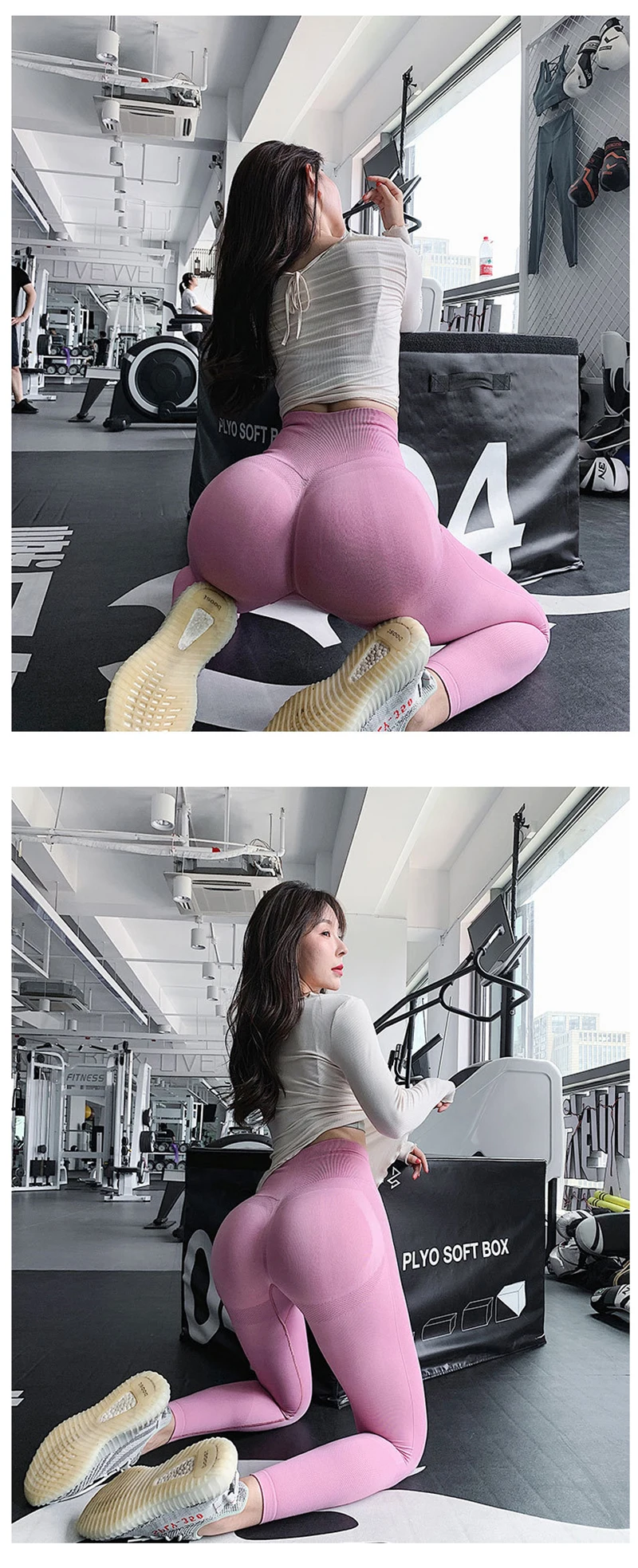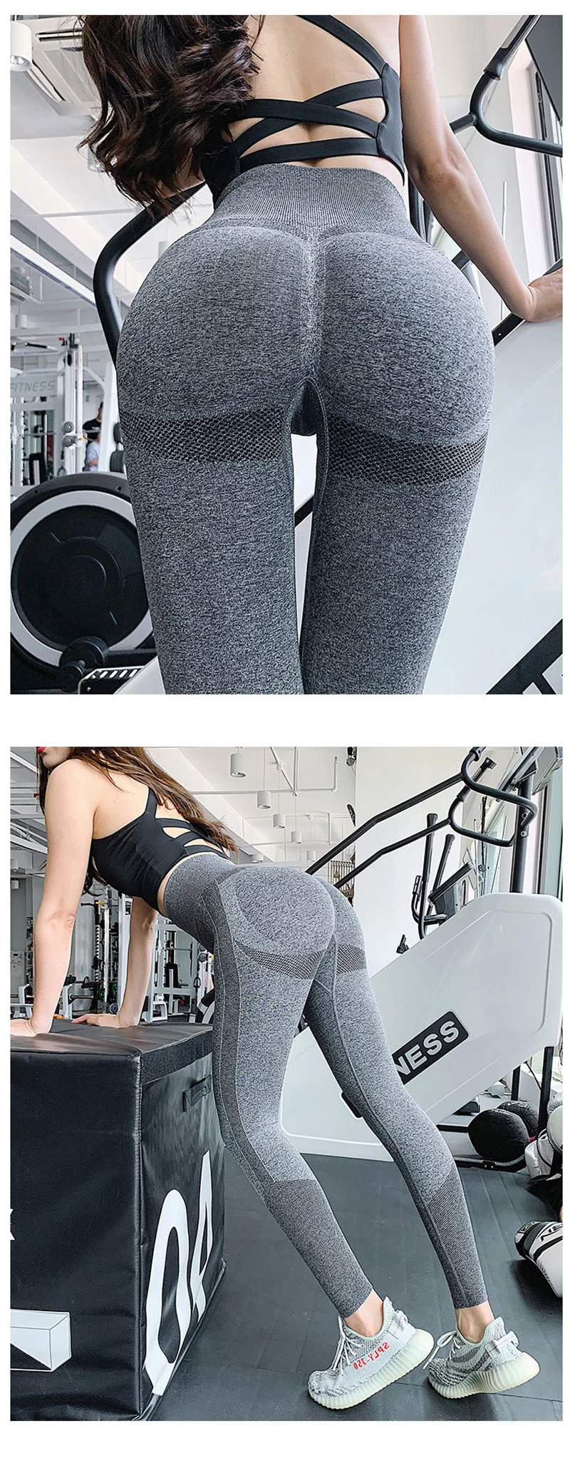 Женские Бесшовные Леггинсы для йоги с высокой талией, тренировочные штаны для женщин, Беговая спортивная одежда, однотонные леггинсы, спортивные штаны для фитнеса