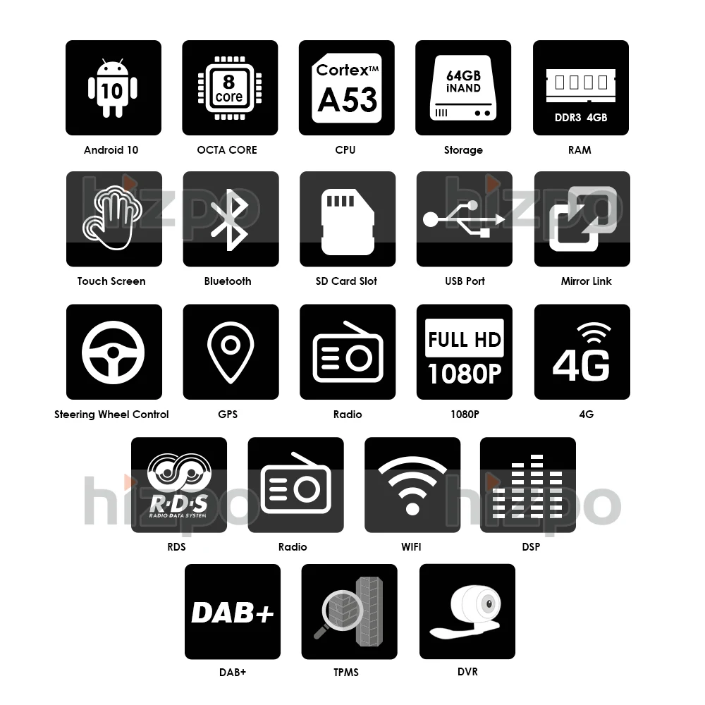 Автомобильный мультимедийный плеер ips dsp 4g 64g hizpo 2 din автом...