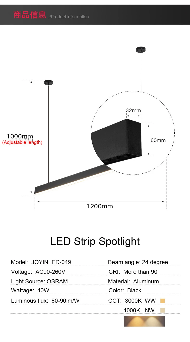 Линейсветильник светодиодный светильник без основного света, длинная подвесная проволосветильник лампа, светильник щение для решетки радиатора, светильник ческая Люстра для кухни, ресторана