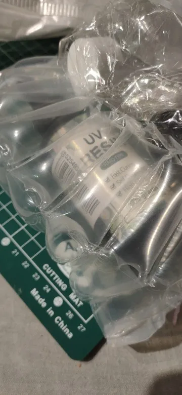 Took a while to arrive but its worth it. amazing resin cures really quick under 120 UV lamp thick and transparent very easy to use !!! thank you will buy again✨
