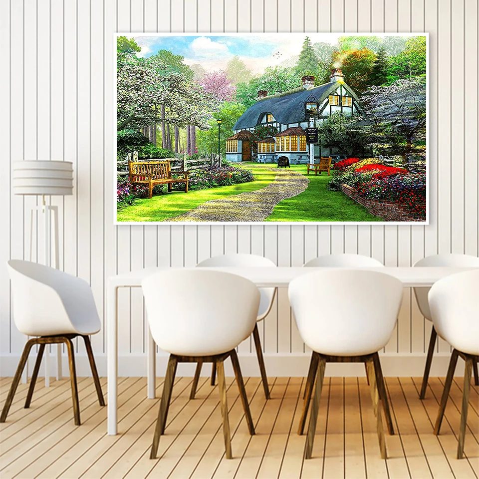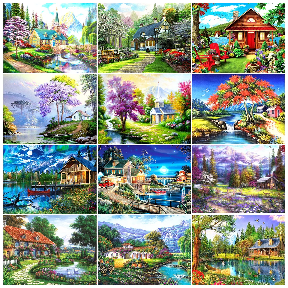 5D алмазная живопись сделай сам, пейзаж, картина, квадраткруглый дом, алмазная вышивка, картина из страз, мозаика, украшение, подарок