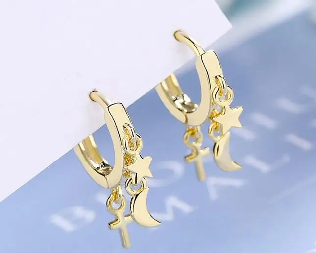 С украшением в виде Новый 2021 простые женские серьги маленькая звезда кнопка в виде Луны маленькие серьги для женщин Мода Серьги