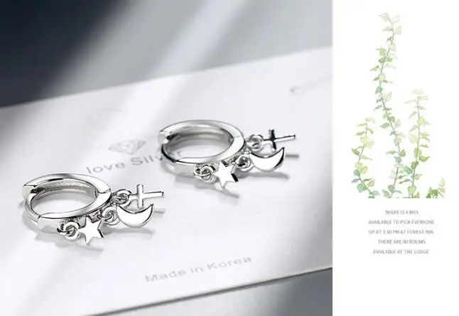 Серьги-кольца женские с крестом и звездой, под золото и серебро