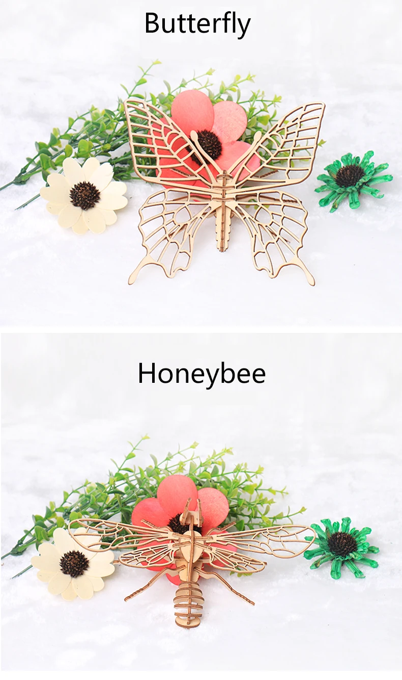 Деревянная 3D-головоломка в виде насекомых, набор для сборки, Интеллектуальные развивающие игрушки, животные на день рождения, подарок для детей сделай сам
