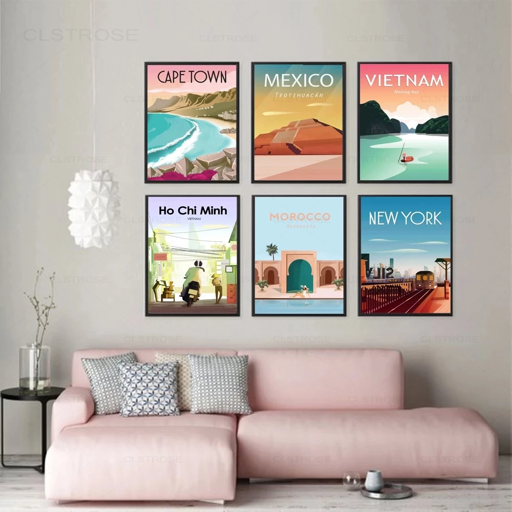 Винтажный постер в скандинавском стиле для путешествий, городов, Аф...