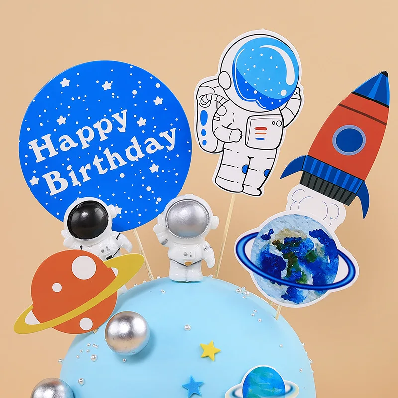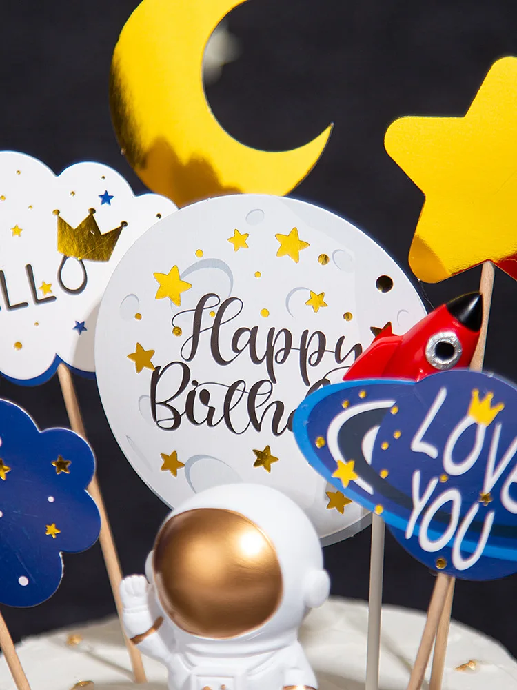 Космическая тема флажки для торта декоративный баннер воздушные шары НЛО космический корабль астронавт флаги подвесной баннер для детей день рождения