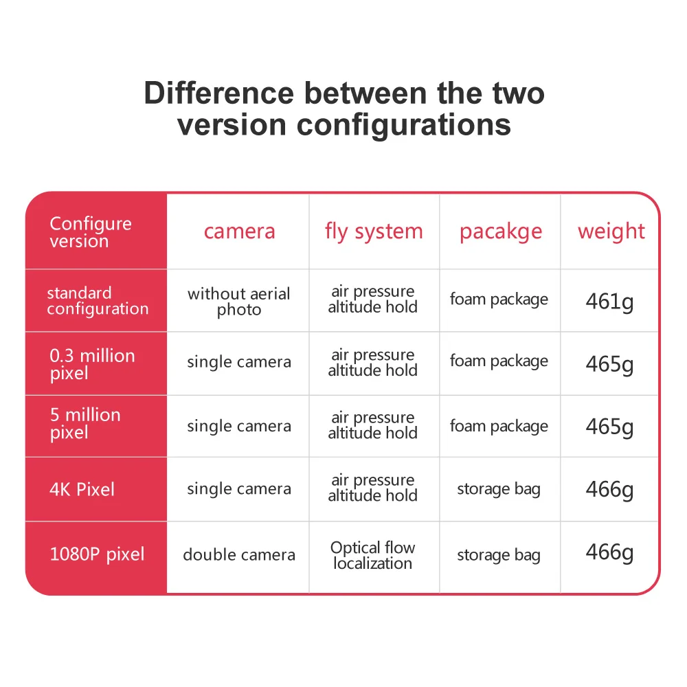 Однокамерная версия имеет функцию настройки высоты, две камеры с функцией оптического позиционирования потока, обе камеры могут переключаться синхронно.