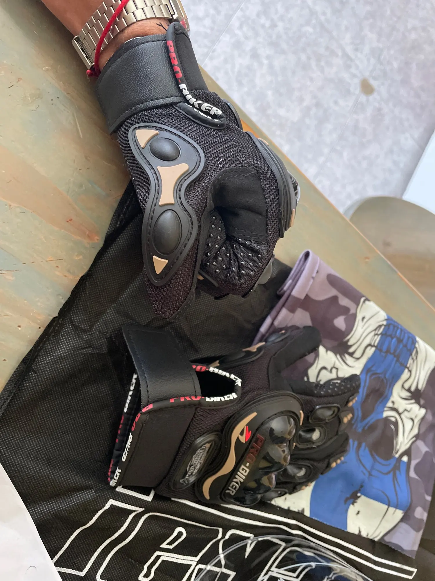 Пришли довольно быстро с подарком. Но, это не мотоперчатки, защиты нет никакой, даже защита костяшек хлипенькая. На велик пойдет, на скутер слабенький, или мопедик. На спорте только на свой страх и риск. Маломерят немного, но растянутся скорее всего. В общем-то картинке и описанию соответствует.