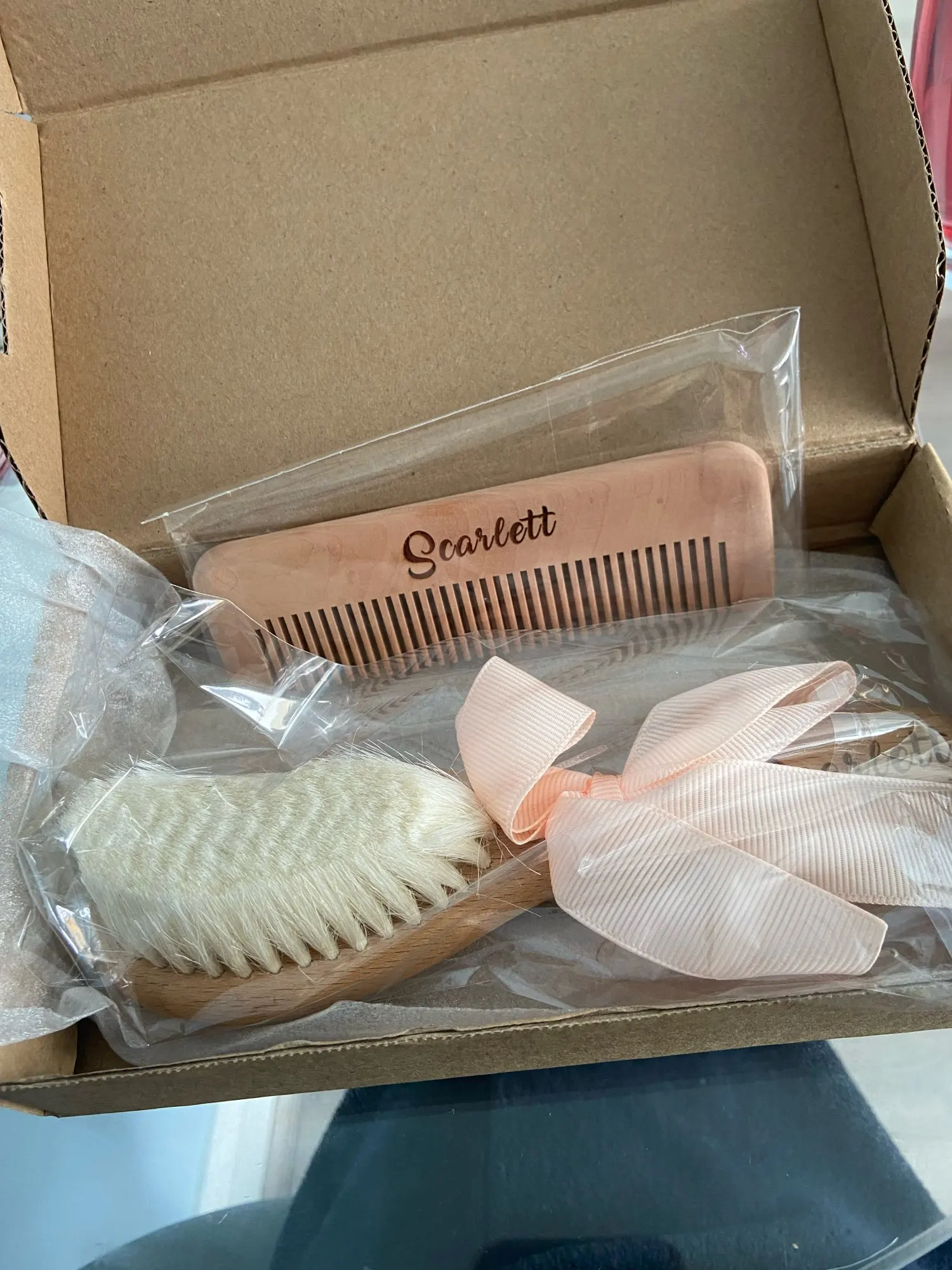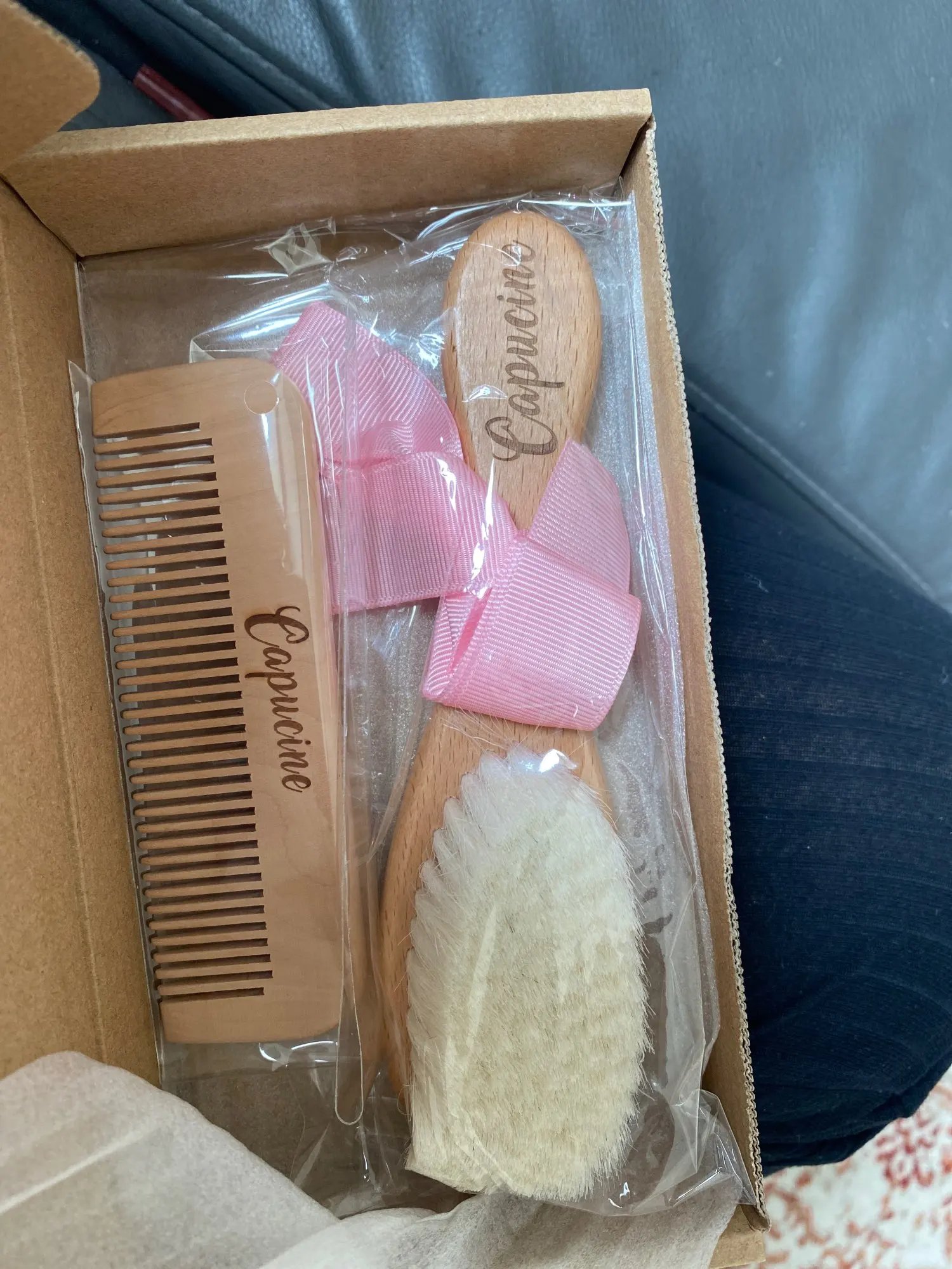 Расческа для купания младенцев с именем на заказ, щетка для ухода за младенцами из натуральной шерсти, деревянная расческа, массажер для новорожденных, подарок для детского душа и записи