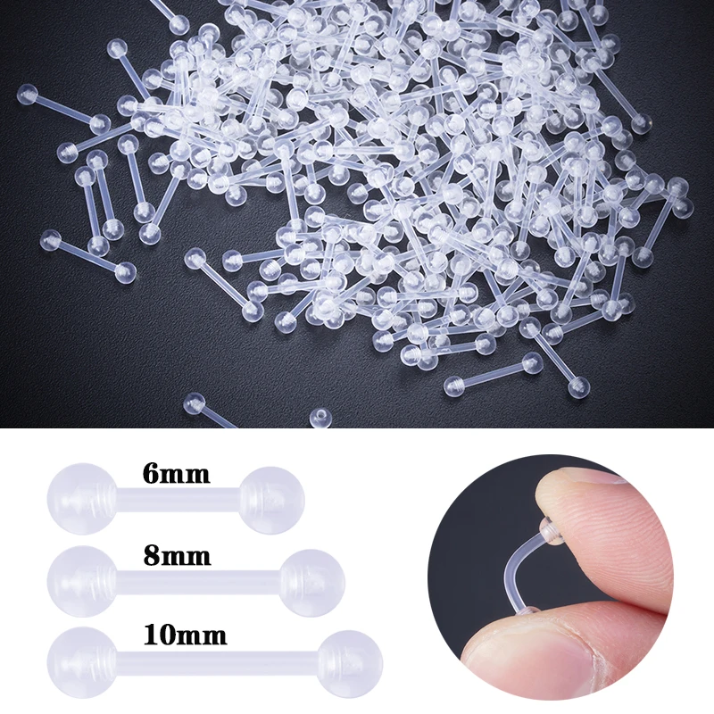 Серьги-гвоздики из прозрачного акрила женские, гибкие кольца для прокола губ, предотвращают аллергию, ушной хрящ Хеликс, ювелирные изделия для пирсинга, 6810 мм, 10 шт.