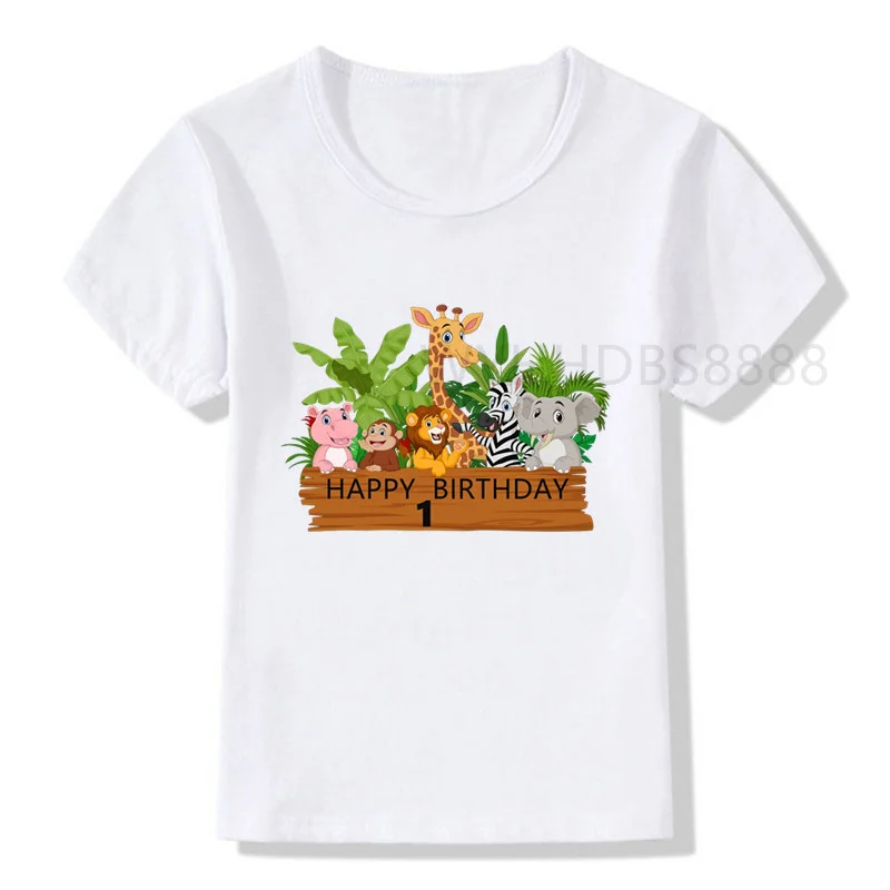 Детская футболка с рисунком животных на вечеринку, день рождения, ц...