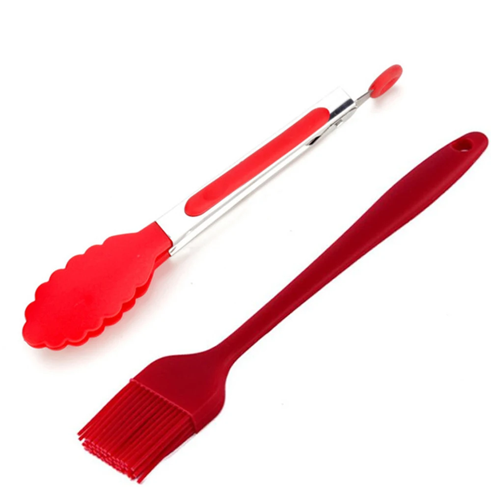 Красный щипцы для барбекю щипцы щеточка для барбекю набор силиконовых масло для барбекю соус кисти Кухня гриль Еда щипцы для мяса Инструменты для барбекю Кухня набор посуды и столовых приборов