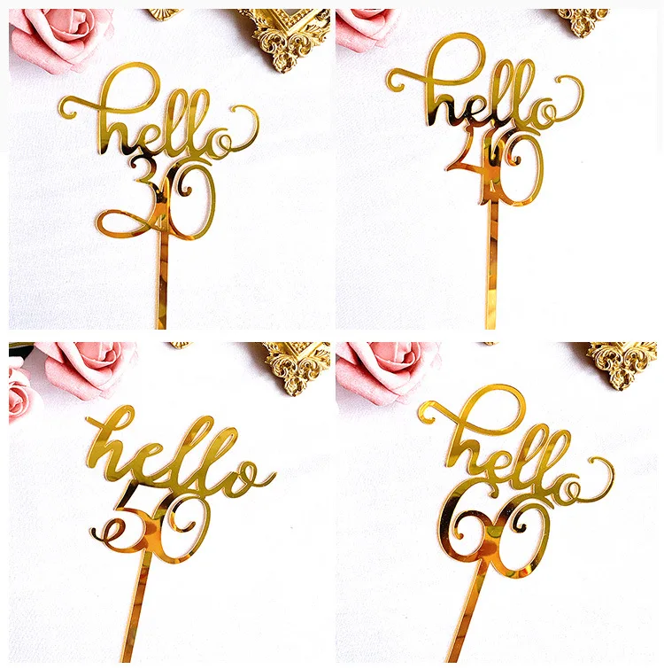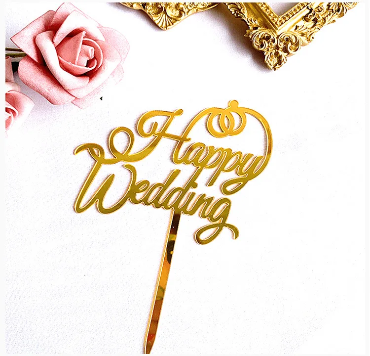 Золотистое акриловое ко дню рождения CakeTopper цифровой любовь свадьба материал шляпа-торт вечерние украшения торта