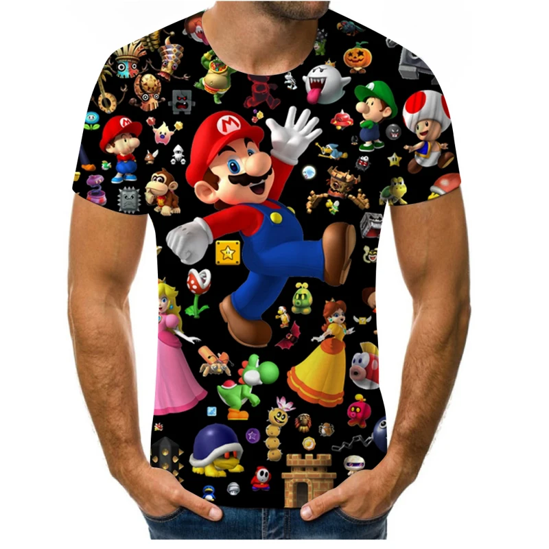 Летняя футболка с 3D-принтом в стиле аниме Super Mario, модная мужс...