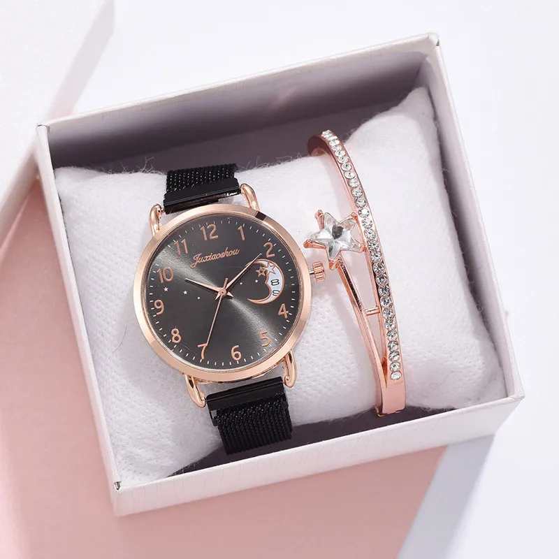 Часы женские кварцевые, с принтом Луны, классический дизайн