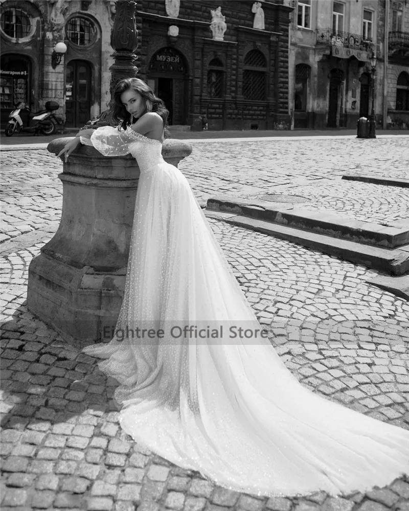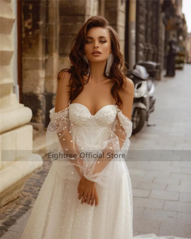 Винтажное свадебное платье в горошек, а-силуэт, с длинным рукавом