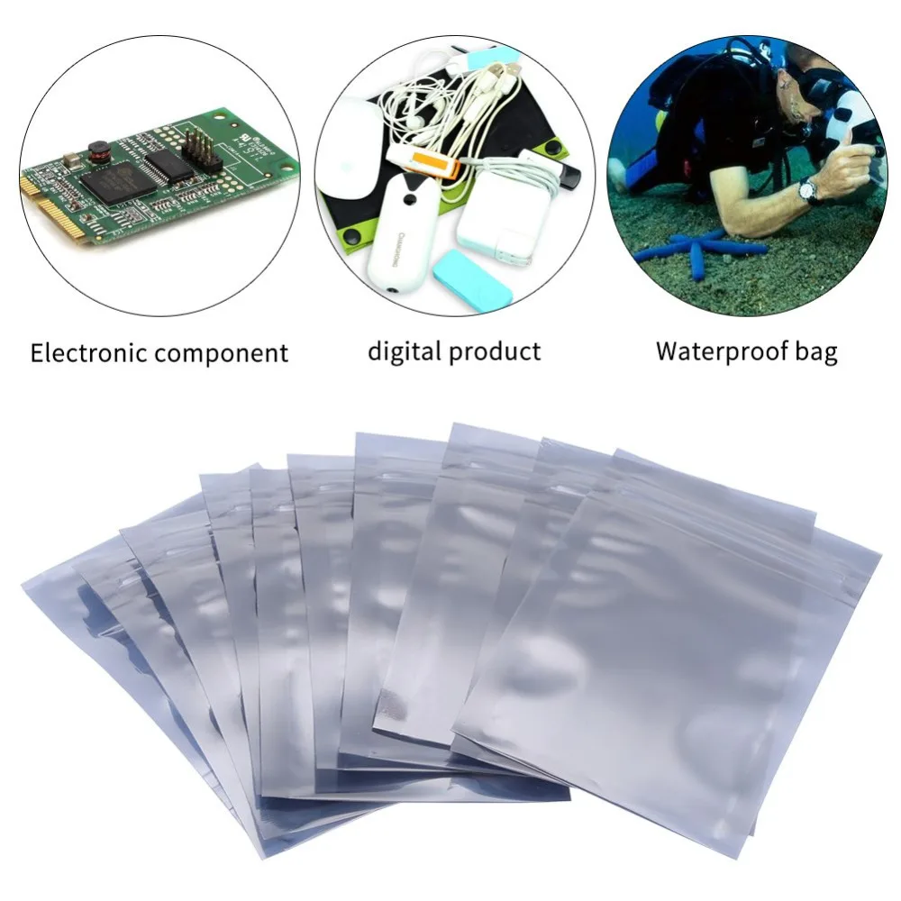 50 шт. Антистатическая Алюминиевая сумка для хранения 4 размера Ziplock Сумки герметичные антистатические сумки для электронных аксессуаров посылка