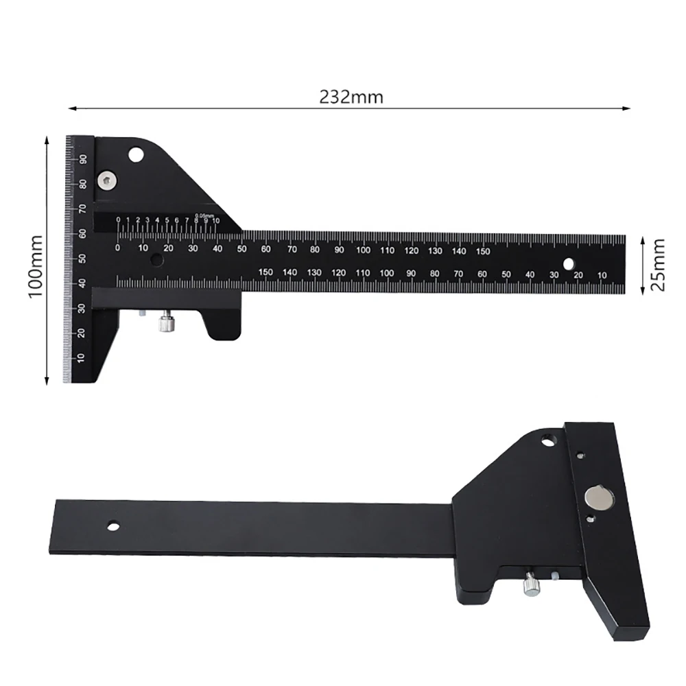 Наименование: инструмент для маркировки деревообработки Материал: алюминиевый сплав Точность измерения: 0,05 мм Цвет: черный Размер: 232x100x25мм Посылка Вес: 0,3 кг