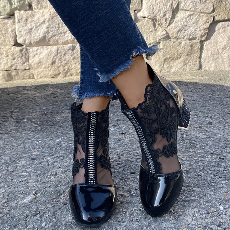 Женские сетчатые ботильоны Rimocy, черные короткие ботинки с вышивк...
