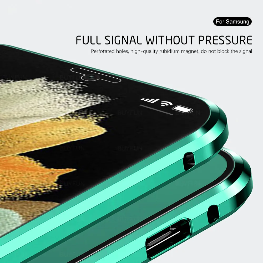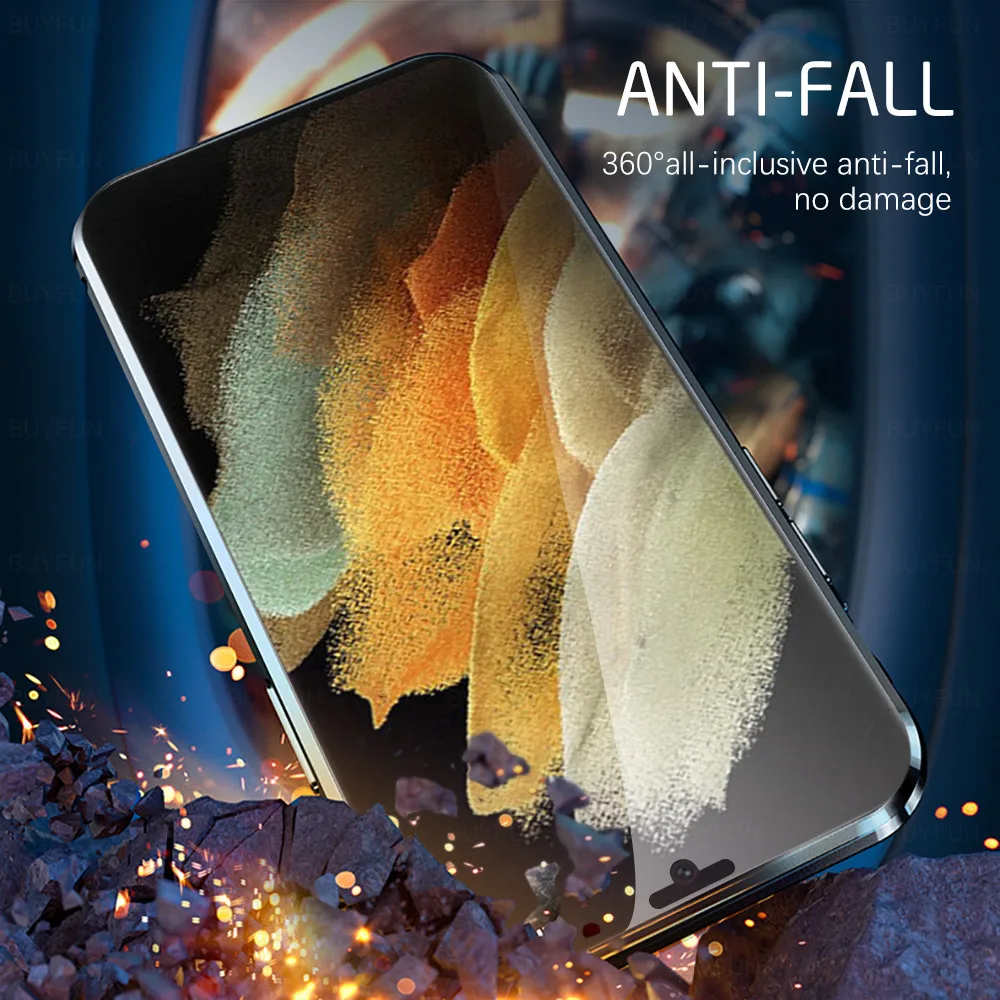Чехол на 360 ° с полным покрытием, металлический бампер, Магнитный флип для samsung galaxy s 21 s21 ultra plus s21ultra s21 + двухсторонний чехол из закаленного стекла