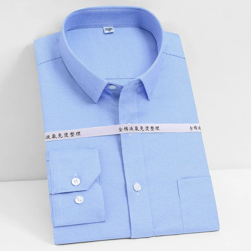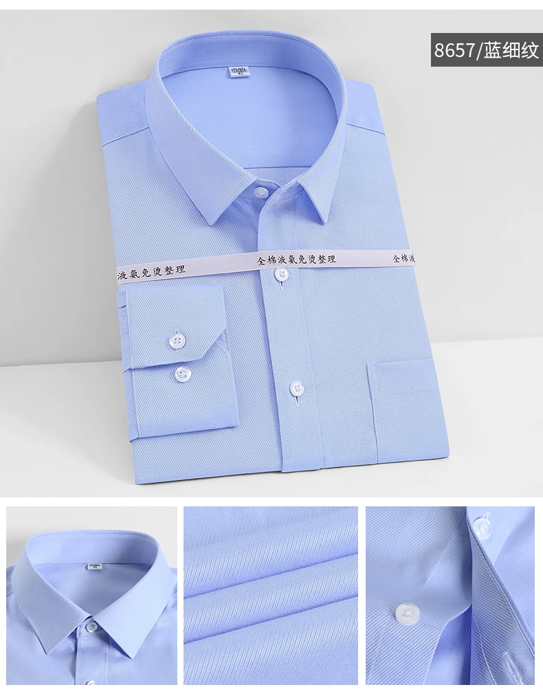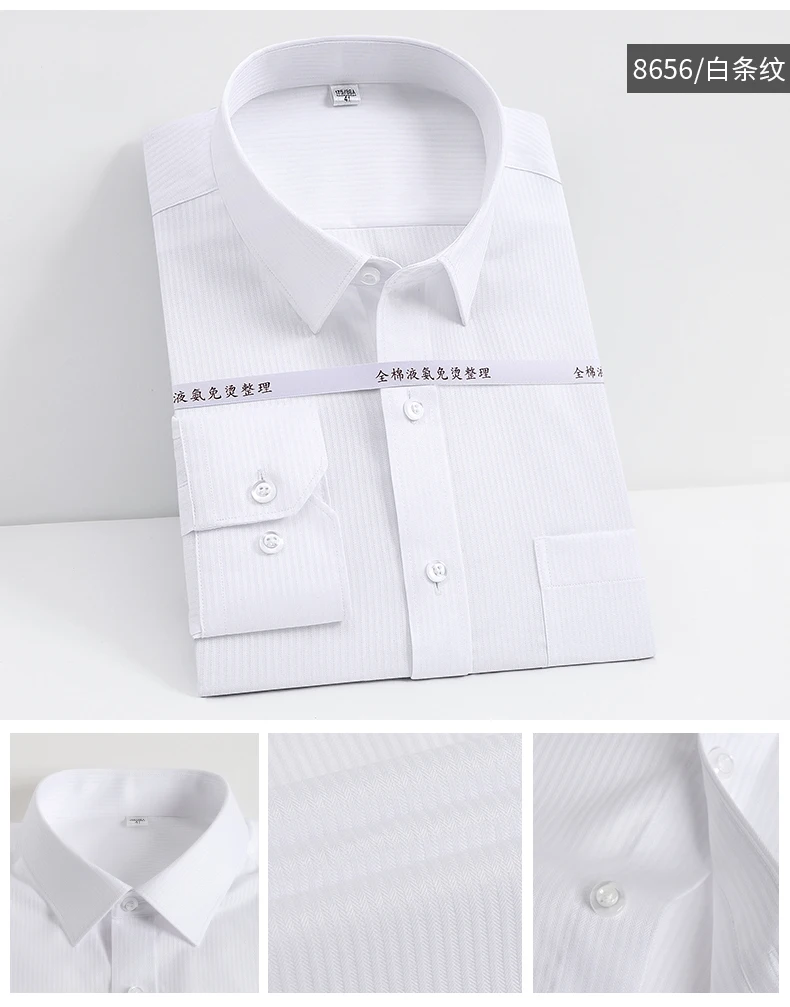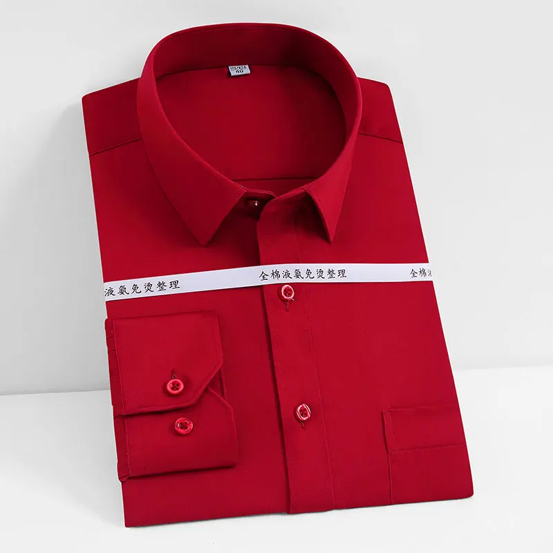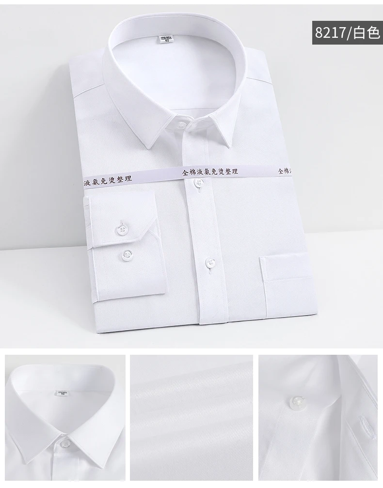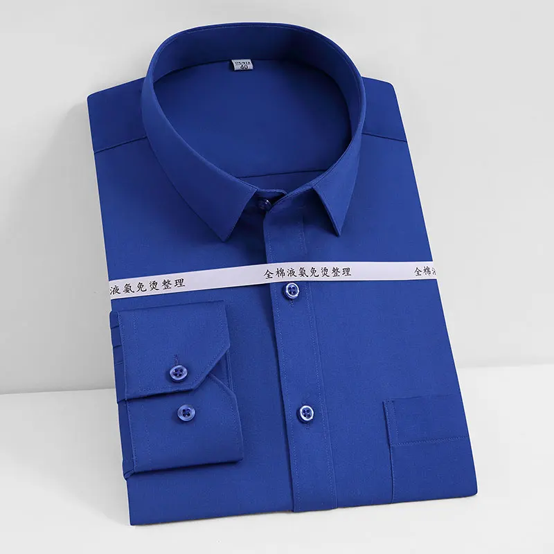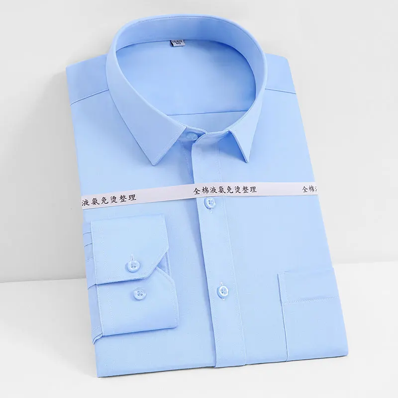Мужская классическая рубашка из натурального хлопка, однотонная деловая рубашка с длинными рукавами, не требует глажки, для офиса и работы, Осень-Зима 100%