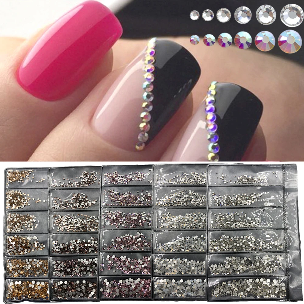 Стразы для дизайна ногтей, блестящие стразы разных размеров из хрус...