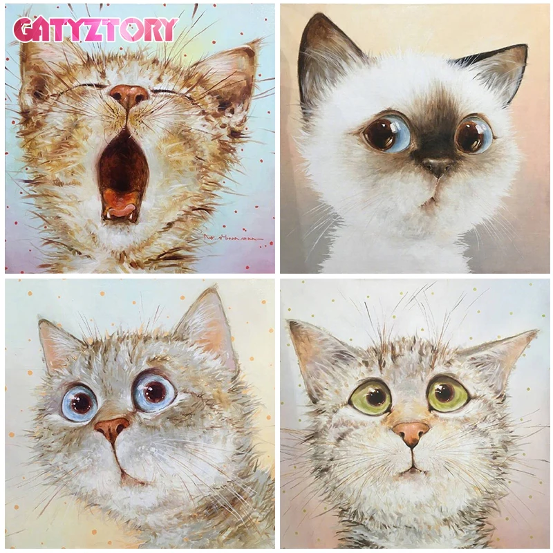 Картина по номерам GATYZTORY 60x75 см, для взрослых и детей, милый кот, животные, Раскрашивание по номерам, украшение для стен