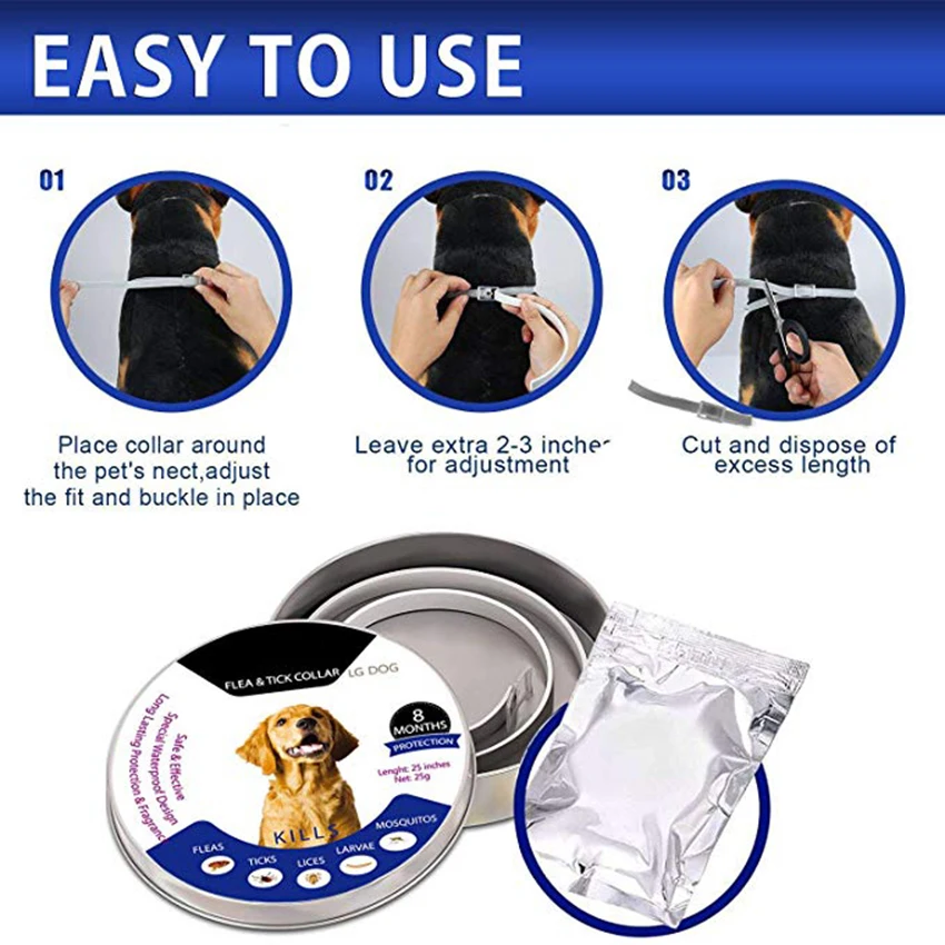 【Один Размер подходит всем 】 - 25 дюймов в длину подходит для больших, средних, маленьких собак и даже щенков. Просто отрежьте ошейник от блох.