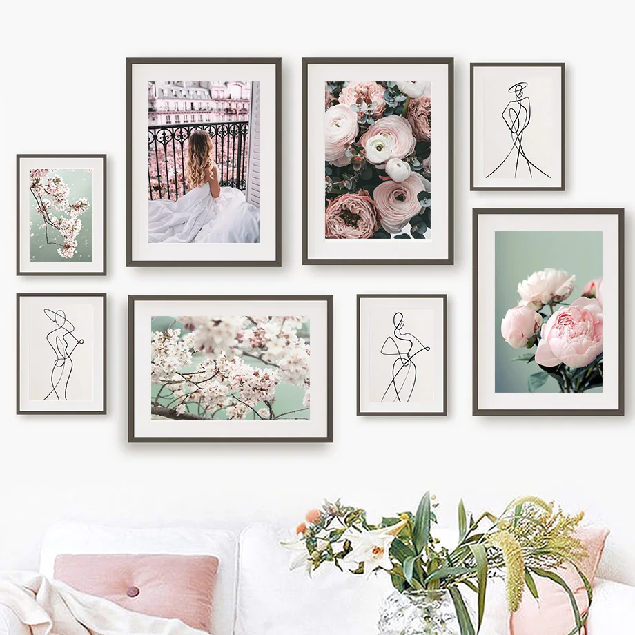 Настенные постеры с розовыми цветами, цветами вишни, розой, пионами...