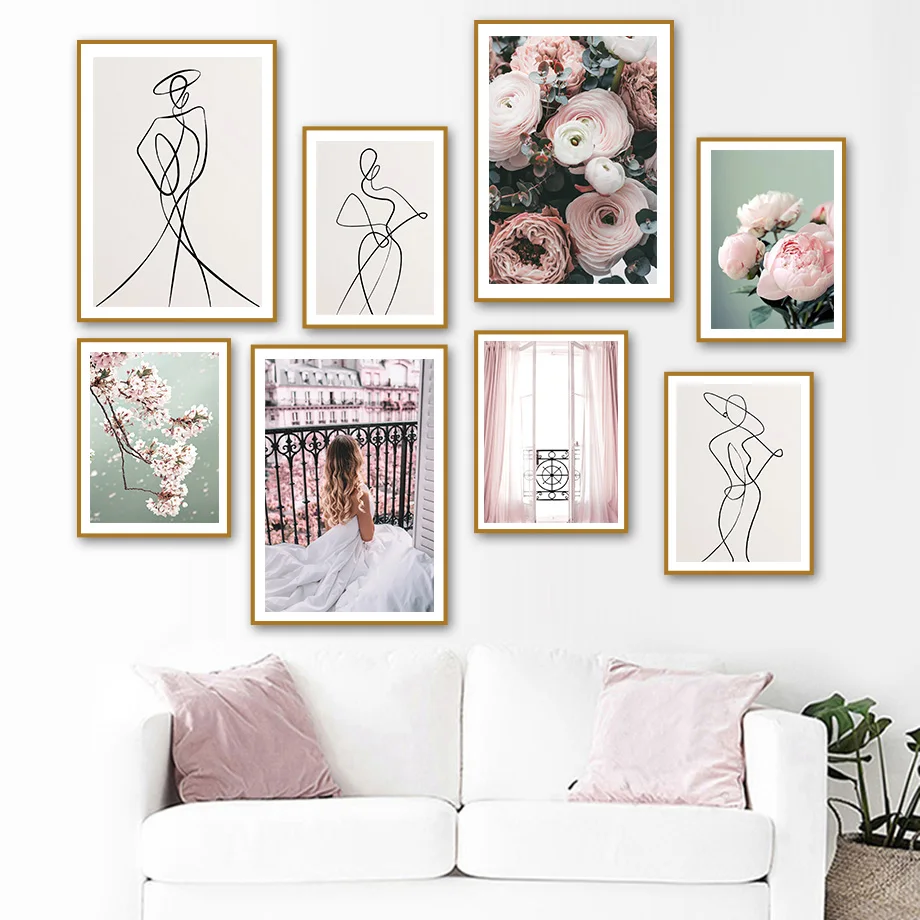 Модные постеры в скандинавском стиле с изображением девушки цветов ...
