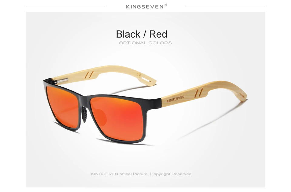 Мужские солнцезащ. Очки с бамбуковой оправой KINGSEVEN, черно-красн...