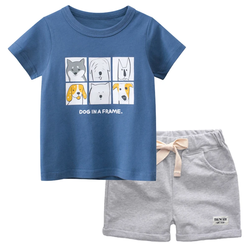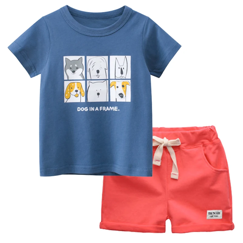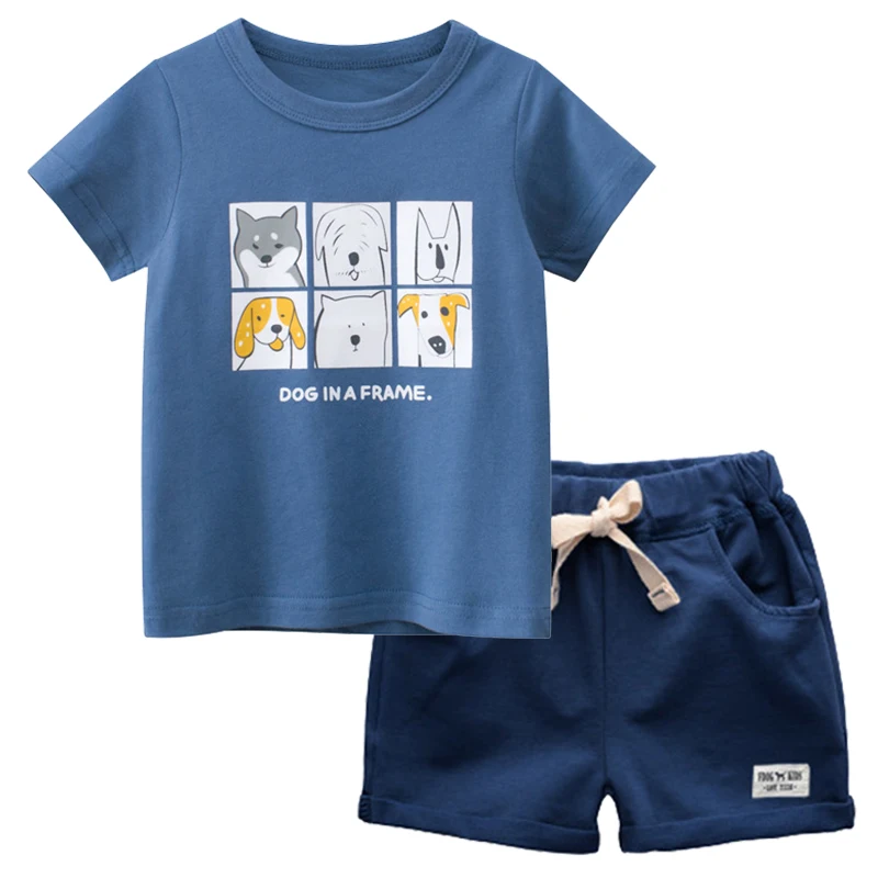 Комплект летней одежды для мальчиков BINIDUCKLING, хлопковая футболка с короткими рукавами и принтом собаки, шорты, удобная детская одежда