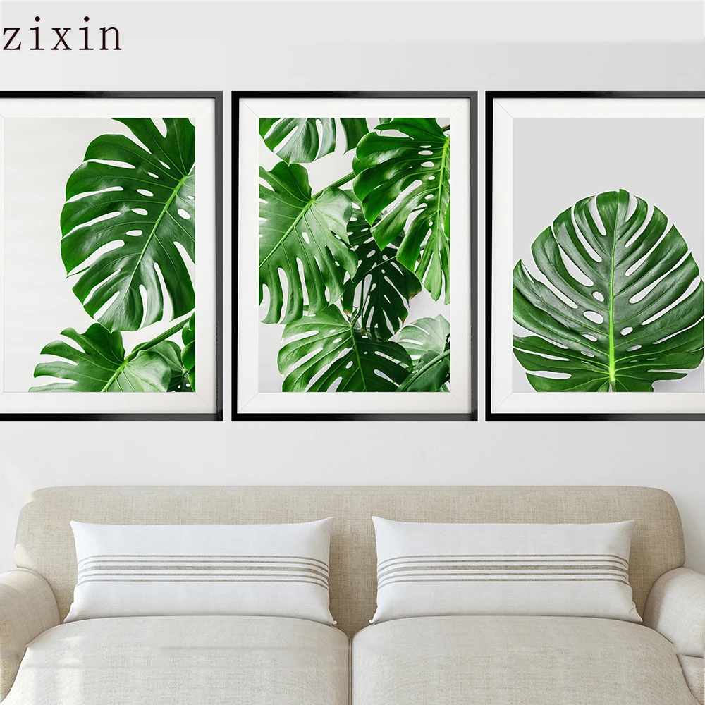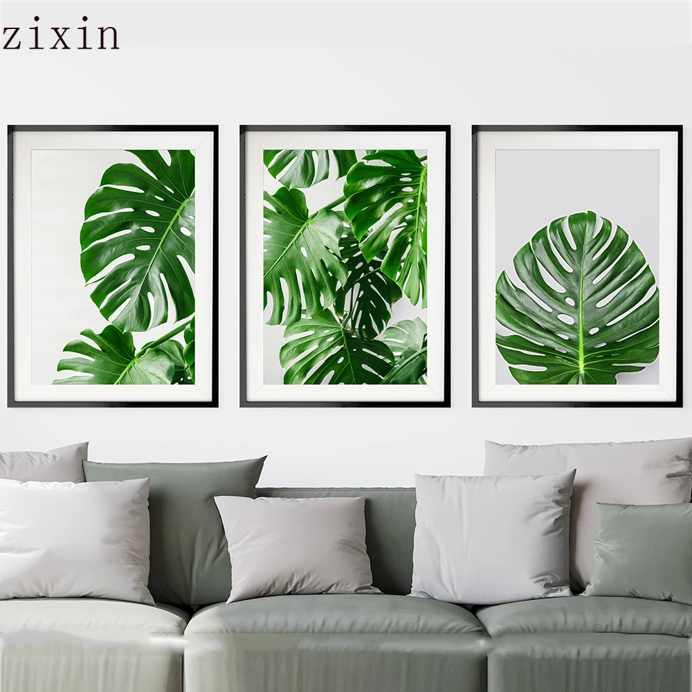 Зеленое растение монстеры алоэ пальмовый лист настенное Искусство Х...