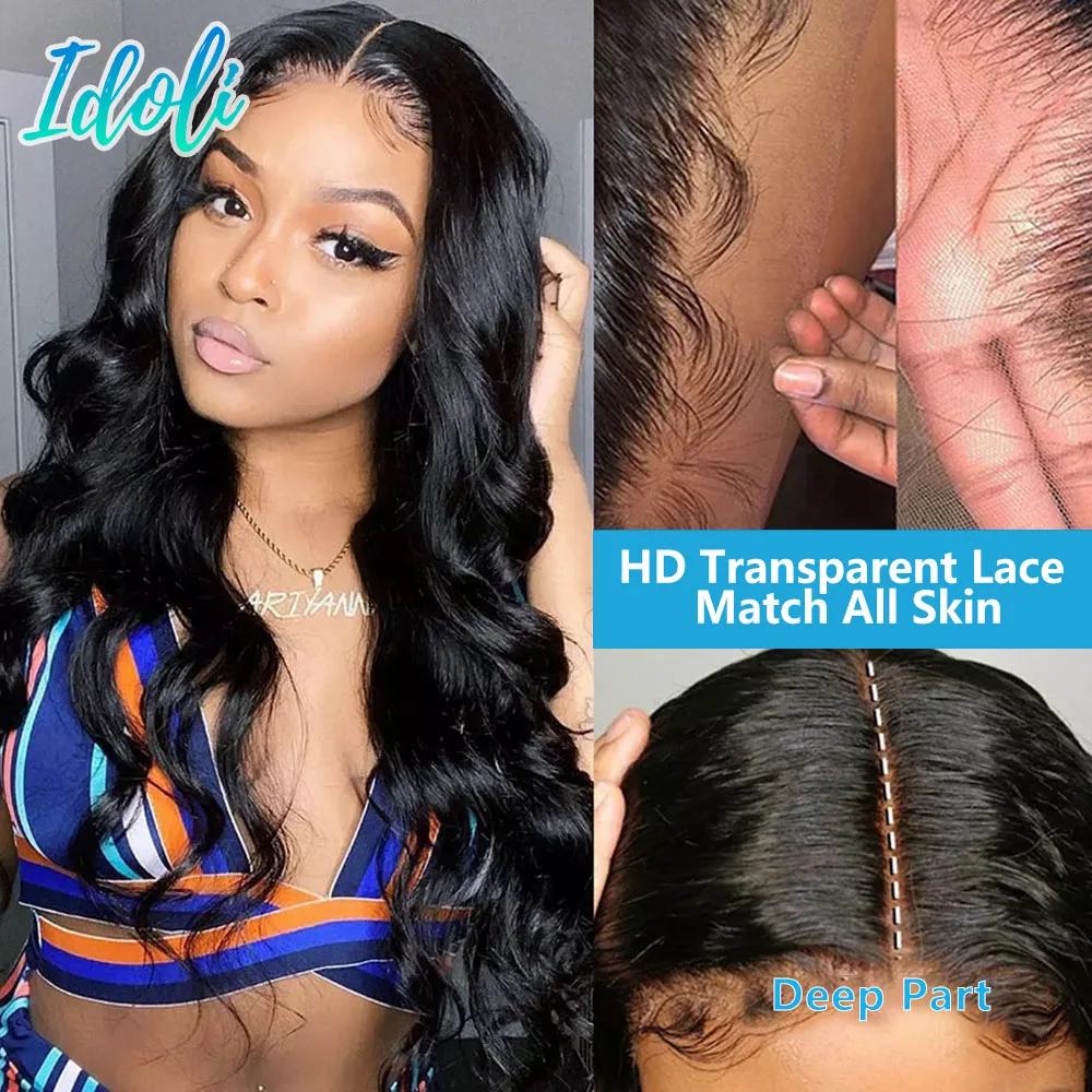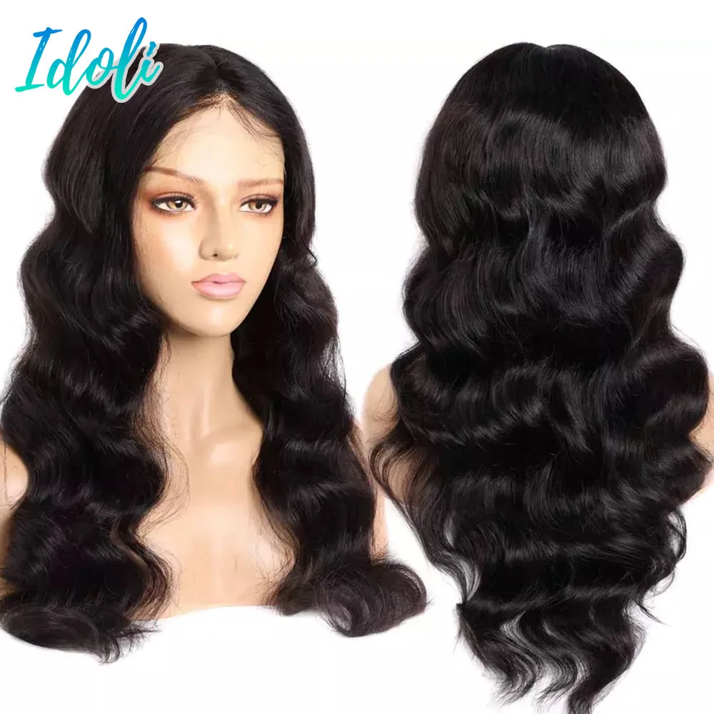 Парики из человеческих волос Remy на сетке спереди для черной женщины, предварительно выщипанные 13x4 180% бразильские волнистые волосы спереди, парик с детскими волосами Idoli