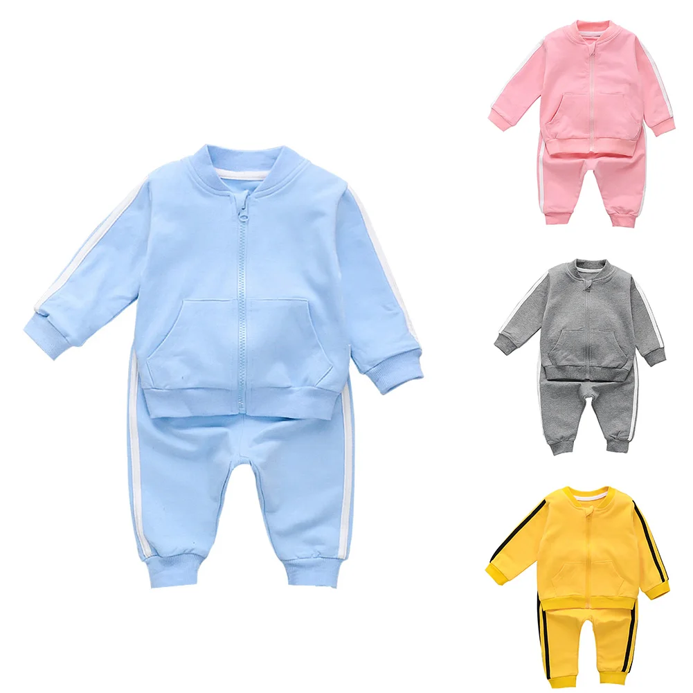 Полосатые спортивные брюки с длинными рукавами куртка-кардиган на молнии.
