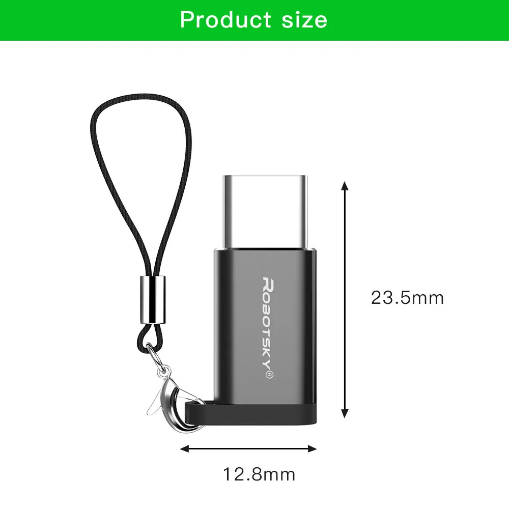 Адаптер Robotsky USBType C OTG, Переходник USB Type C (штекер) на Micro USB (гнездо) для MacBook, Samsung, Huawei, разъем USB C OTG