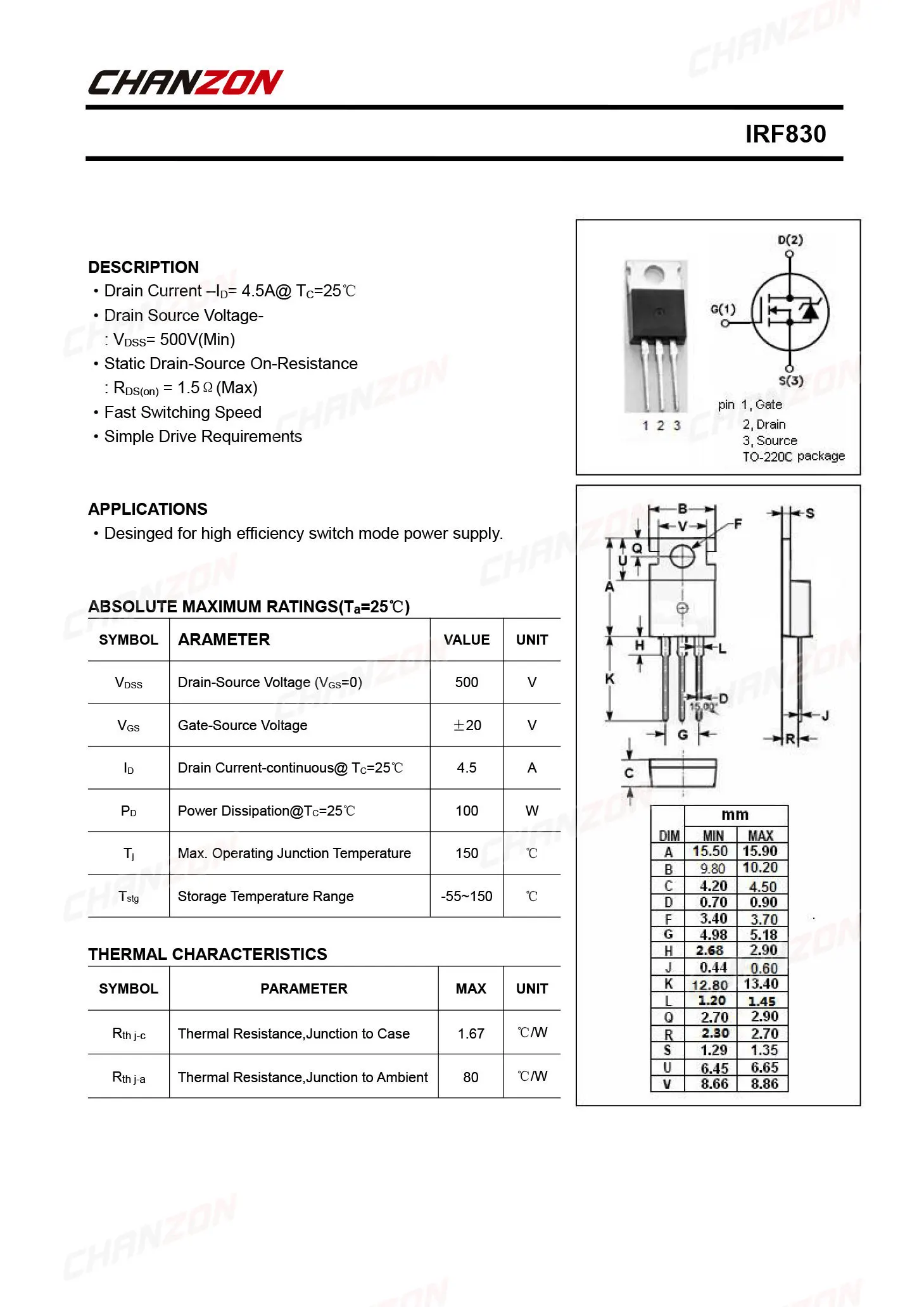 10 шт., транзистор IRF830 TO-220, Мощный транзистор, биполярное соединение, BJT, мощная триодная трубка, ФТС DIP 500 А, В, интегральные схемы