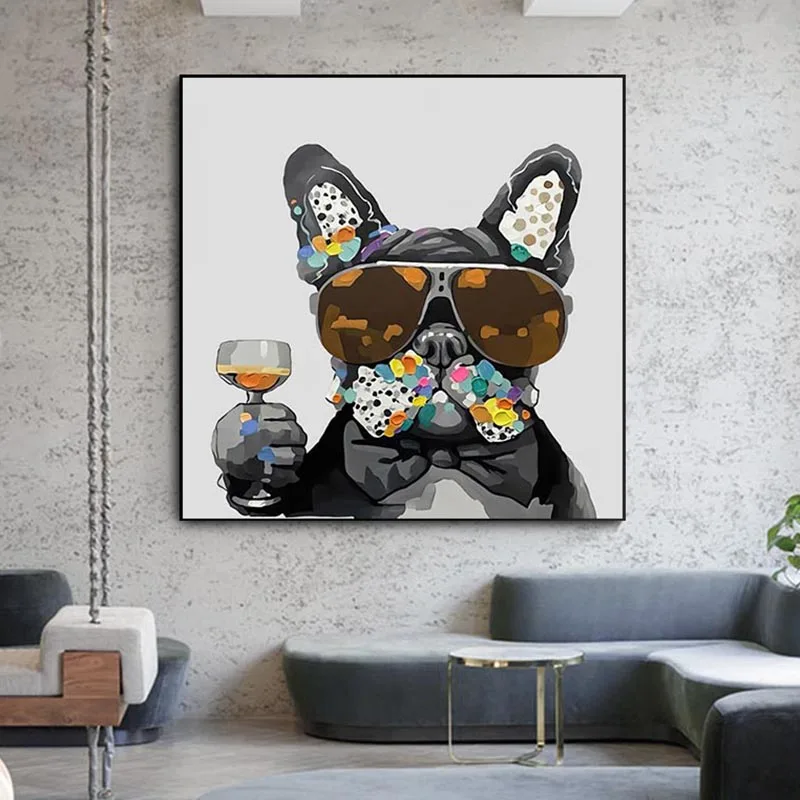 Животные, Черный Бульдог, собака, холст, живопись, французский пост...