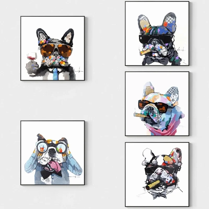 Абстрактная животная картина маслом на холсте настенные плакаты и принты бульдог Питьевая Настенная картина для детской комнаты домашний декор