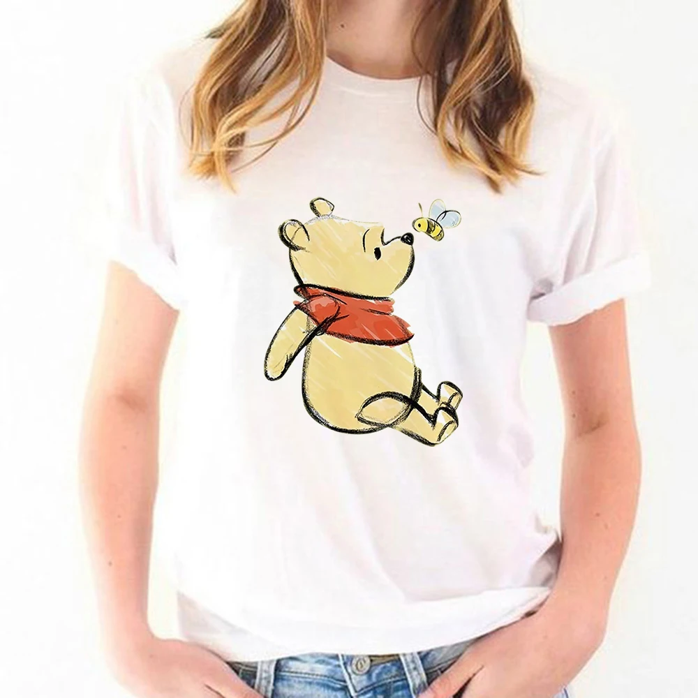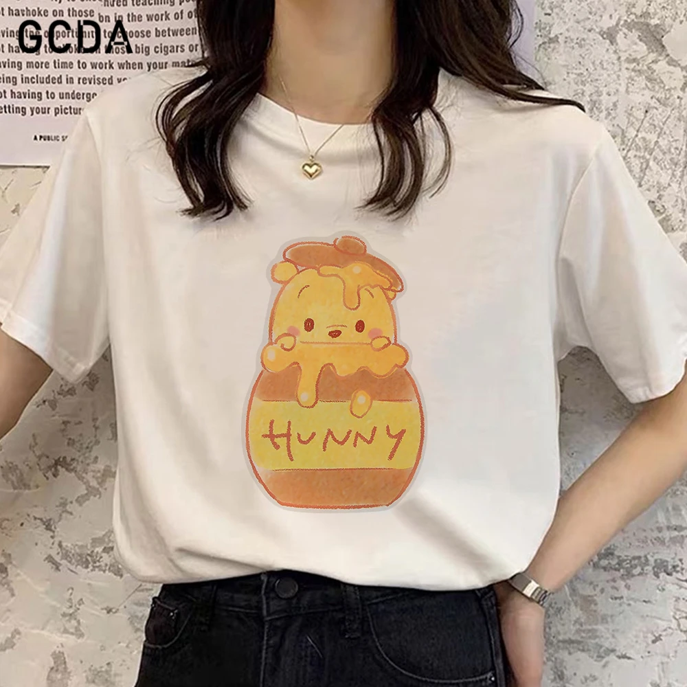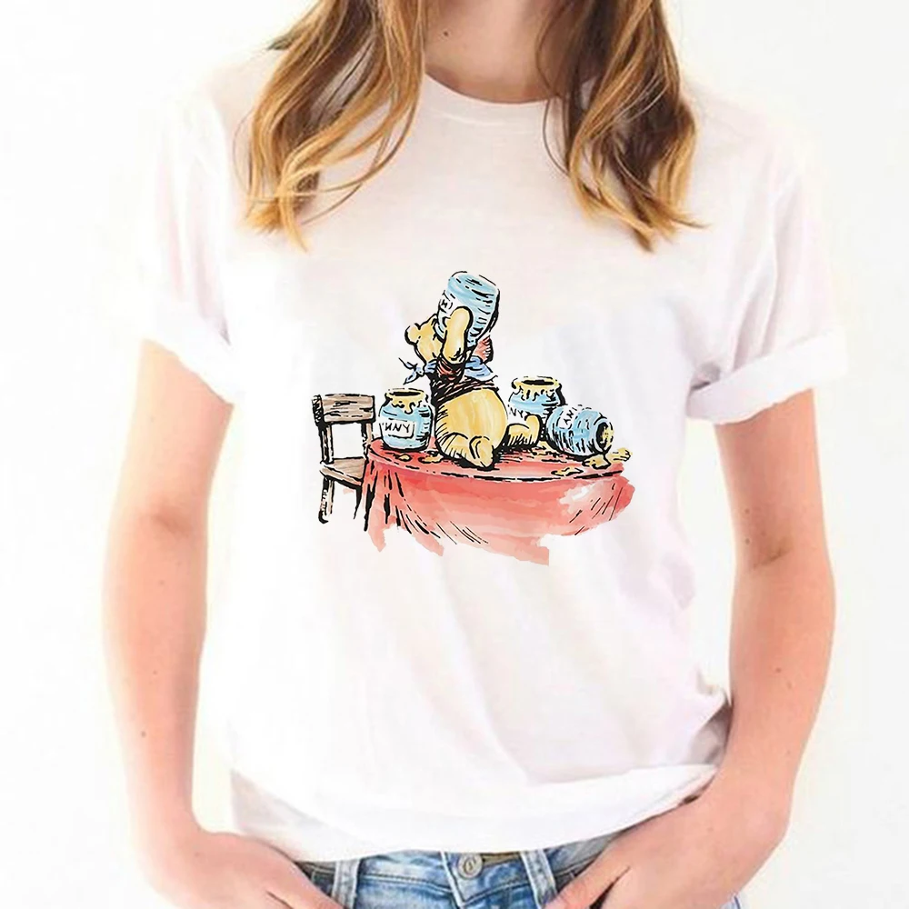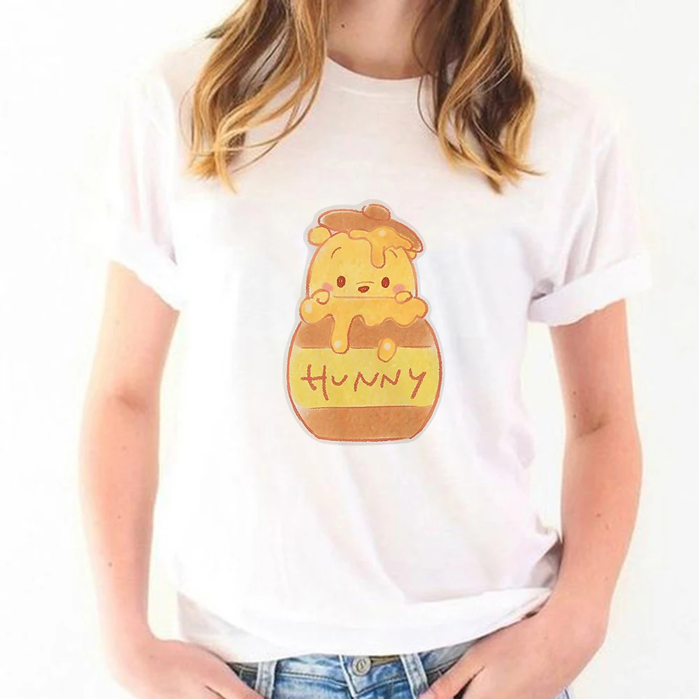 Новое поступление, футболка с изображением пуха, медведя, меда, пуха, поп-футболка в стиле Харадзюку, Красивая свободная Женская модная футболка с изображением Винни-Пуха
