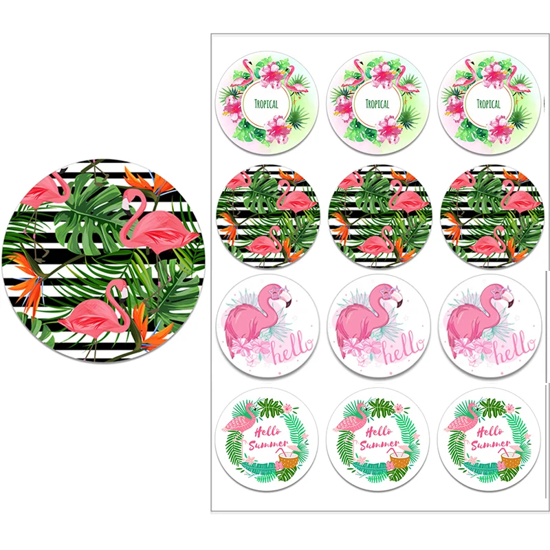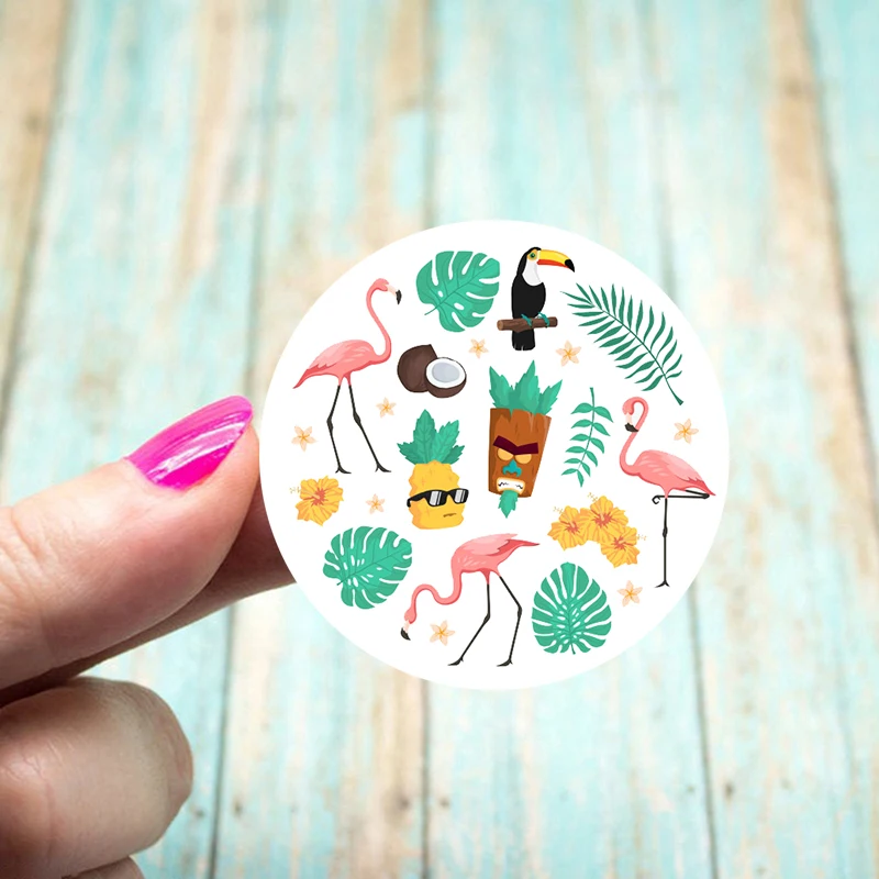 4,5 см, Гавайские украшения для вечеринки, наклейки, Подарочная коробка, этикетки, фламинго, летняя тропическая наклейка, украшение для вечеринки и свадьбы