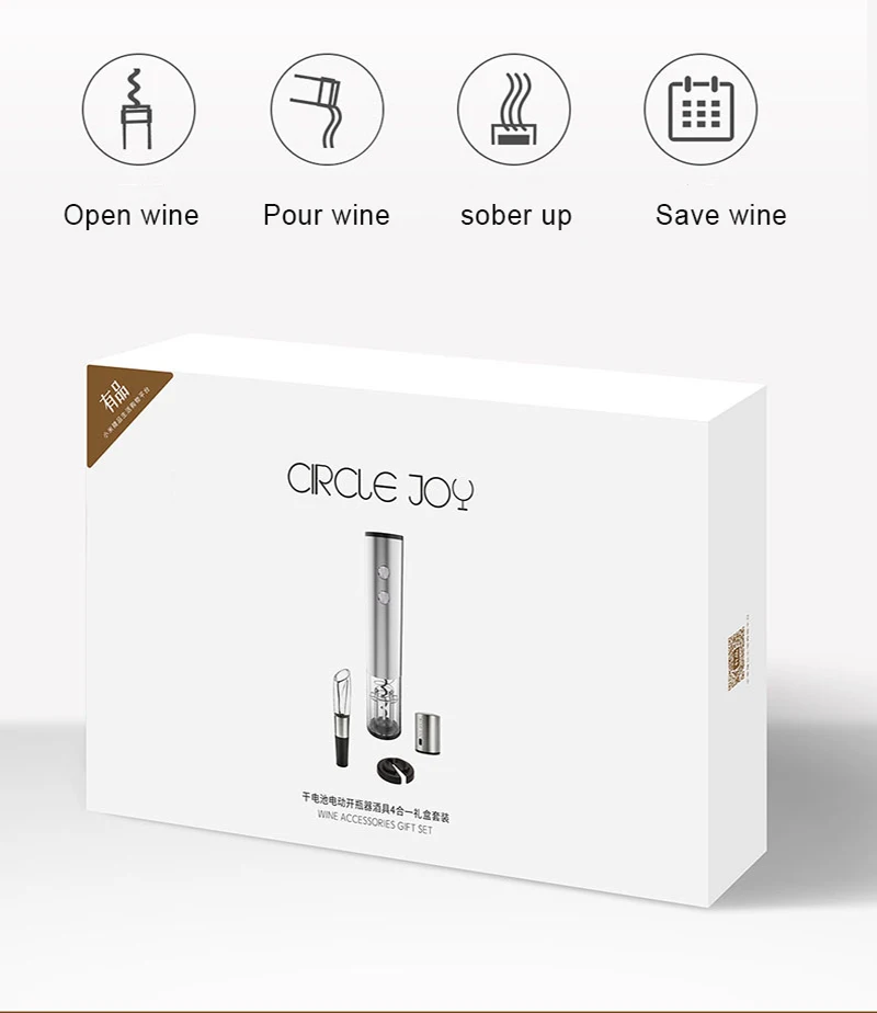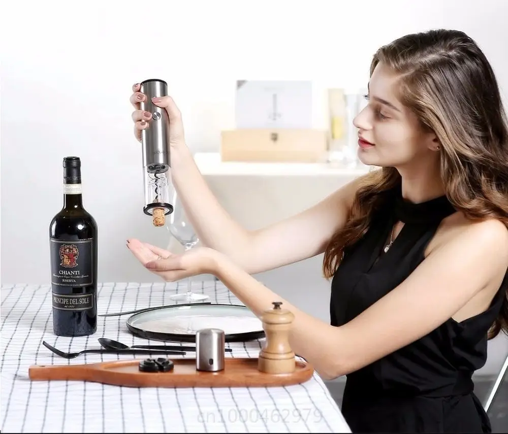 Автоматический Электрический штопор Xiaomi, штопор из нержавеющей стали, 4 в 1, наборы, графин для вина, круглая винная пробка, беспроводной фольга, резак