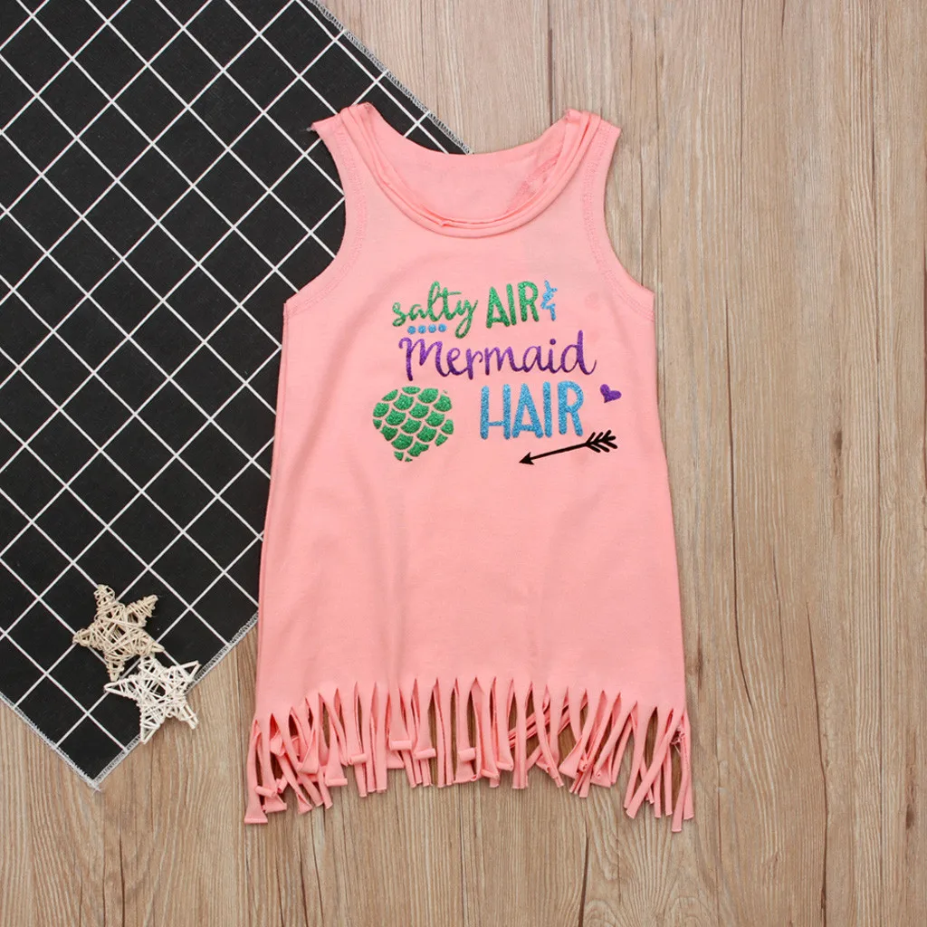 40 # детское платье для маленьких девочек жилет без рукавов с английскими буквами для девочек розовое платье с бахромой платье без рукавов с кисточками
