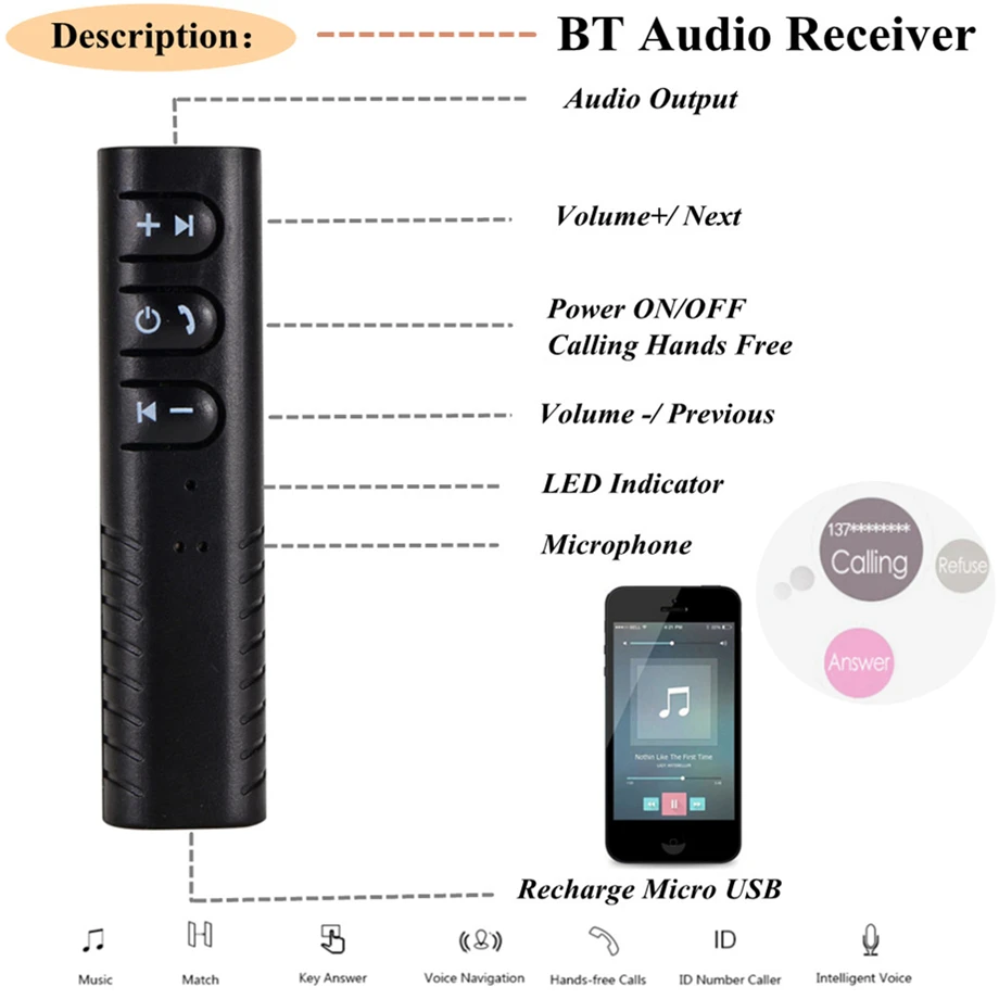 PzzPss Bluetooth автомобильный комплект беспроводной гарнитуры AUX стерео музыкальный аудио приемник адаптер Мини 3,5 мм разъем для телефона
