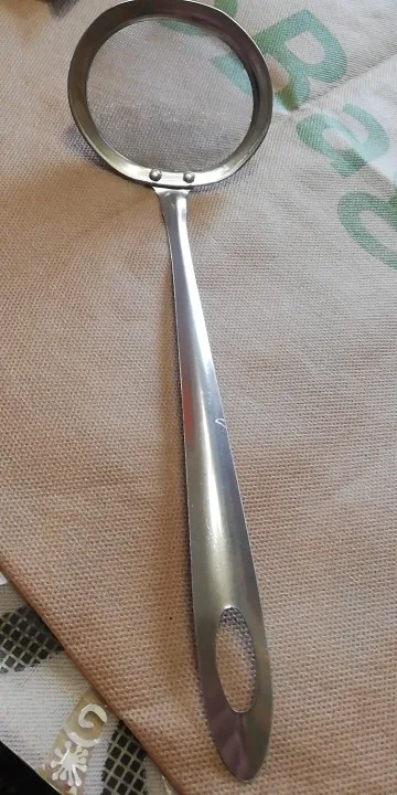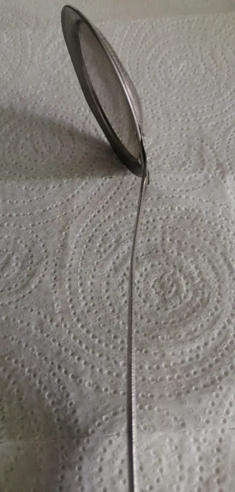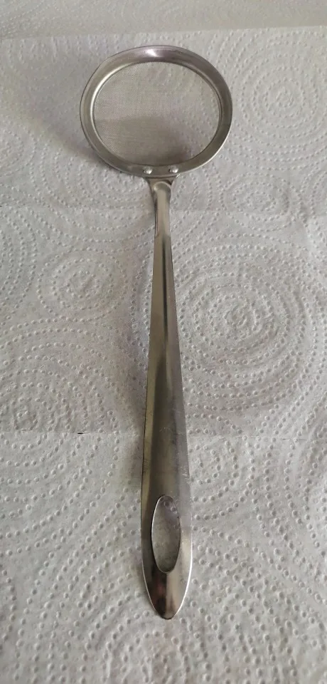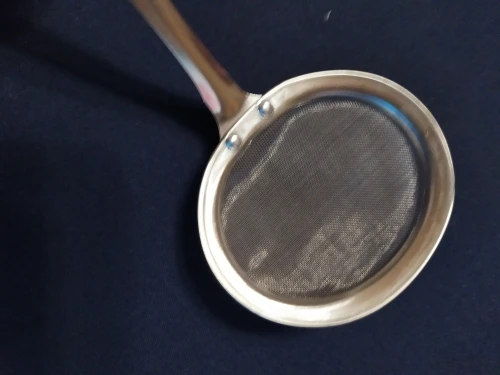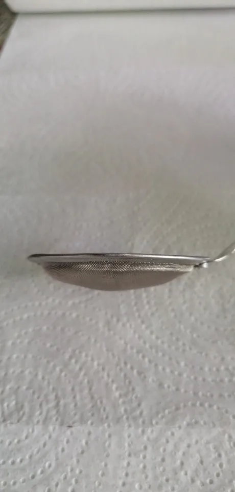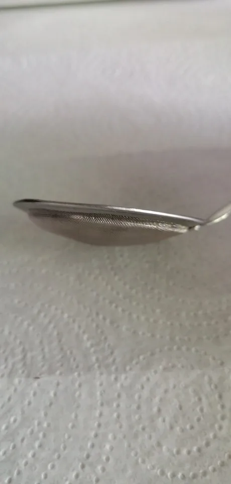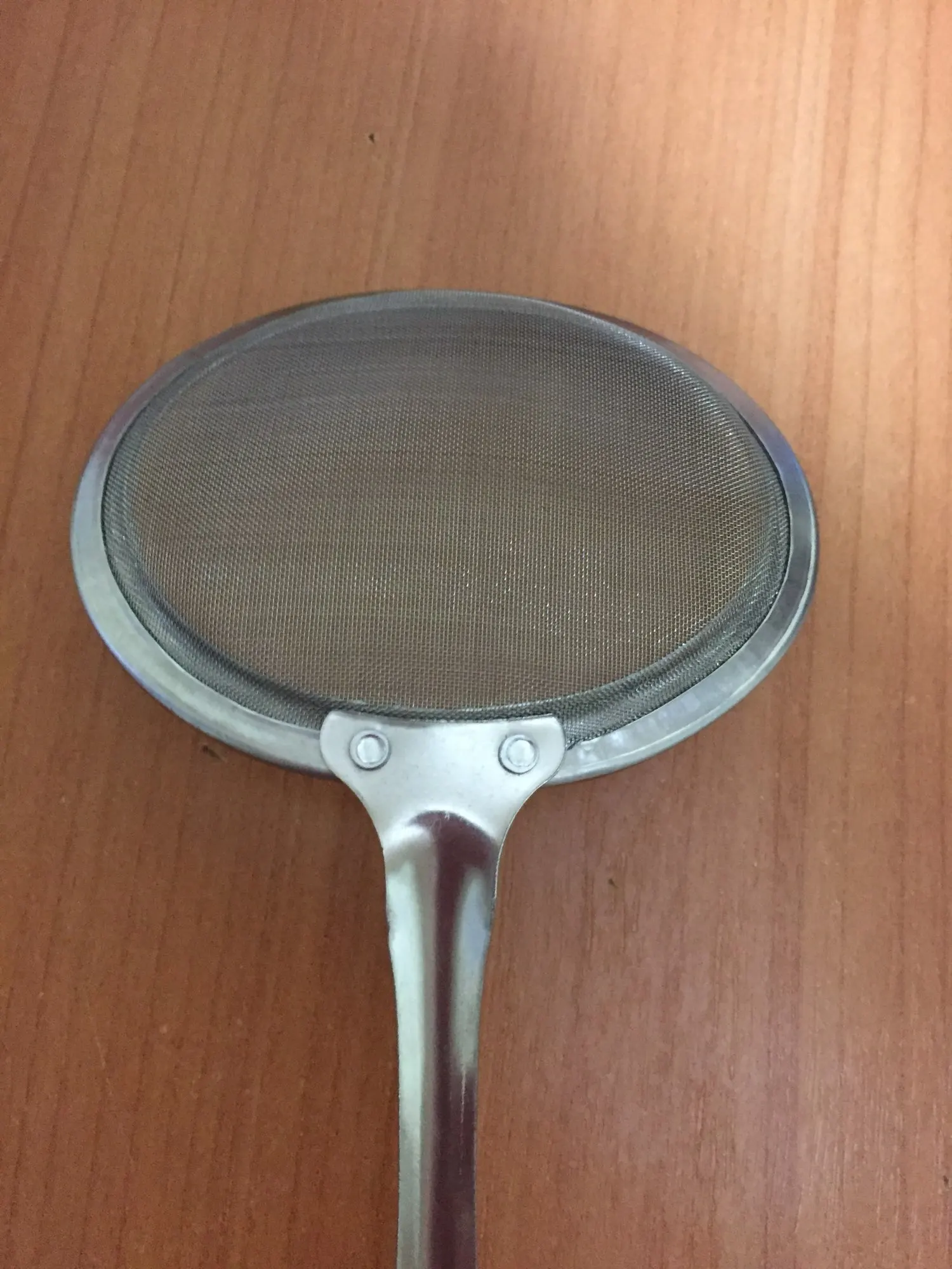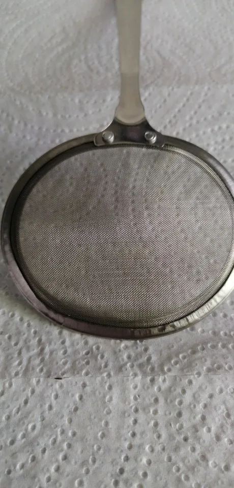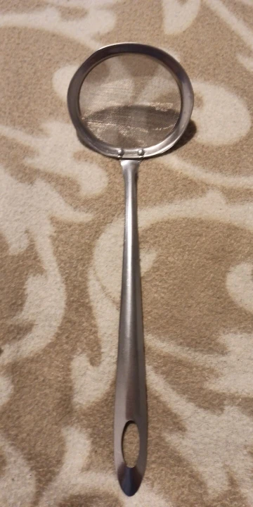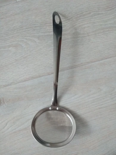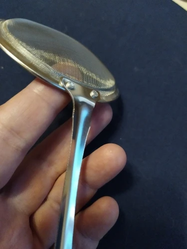 Ситечко очень мелкое, это шикарно! Очень нужный и полезный инструмент на любой кухне! Сделано хорошо. Ручка тонкая по толщине из мягкого металла, гнётся. Ситечко к ручке присоединено заклёпками. Ситечко не глубокое, сантиметр где-то. Товаром доволен. Товар и продавца рекомендую!